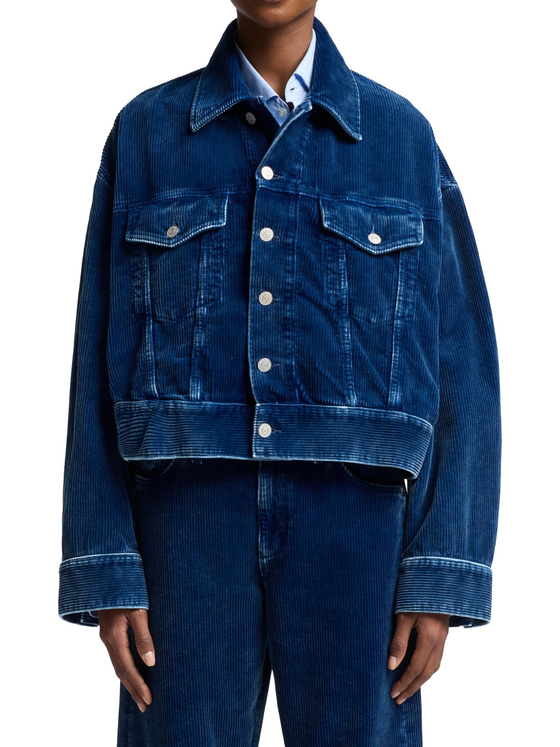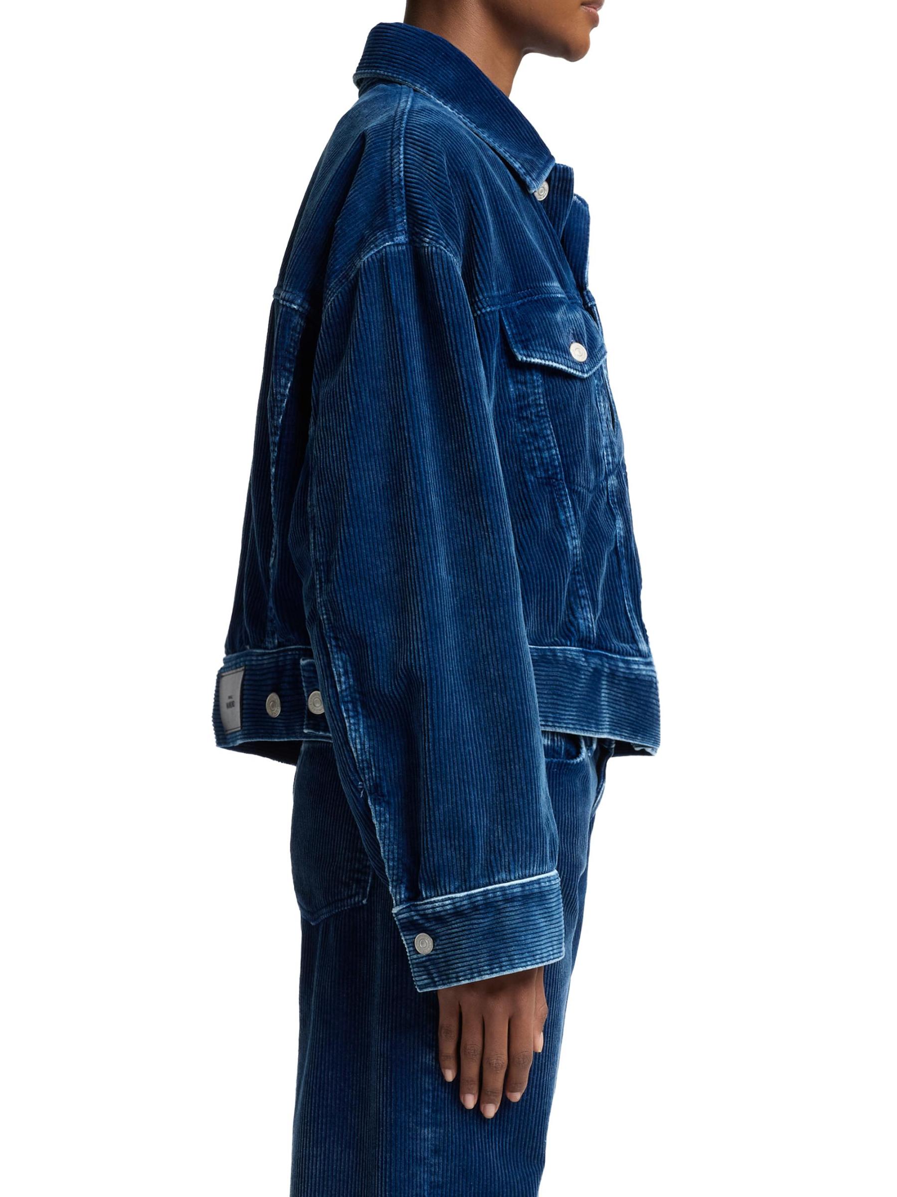 يتميز جاكيت Oli coot Trucker من 7 For All Mankind بمقاس مريح، ويتميز بياقة مدببة وجيوب على الصدر وتفاصيل باهتة عند الدرزات.