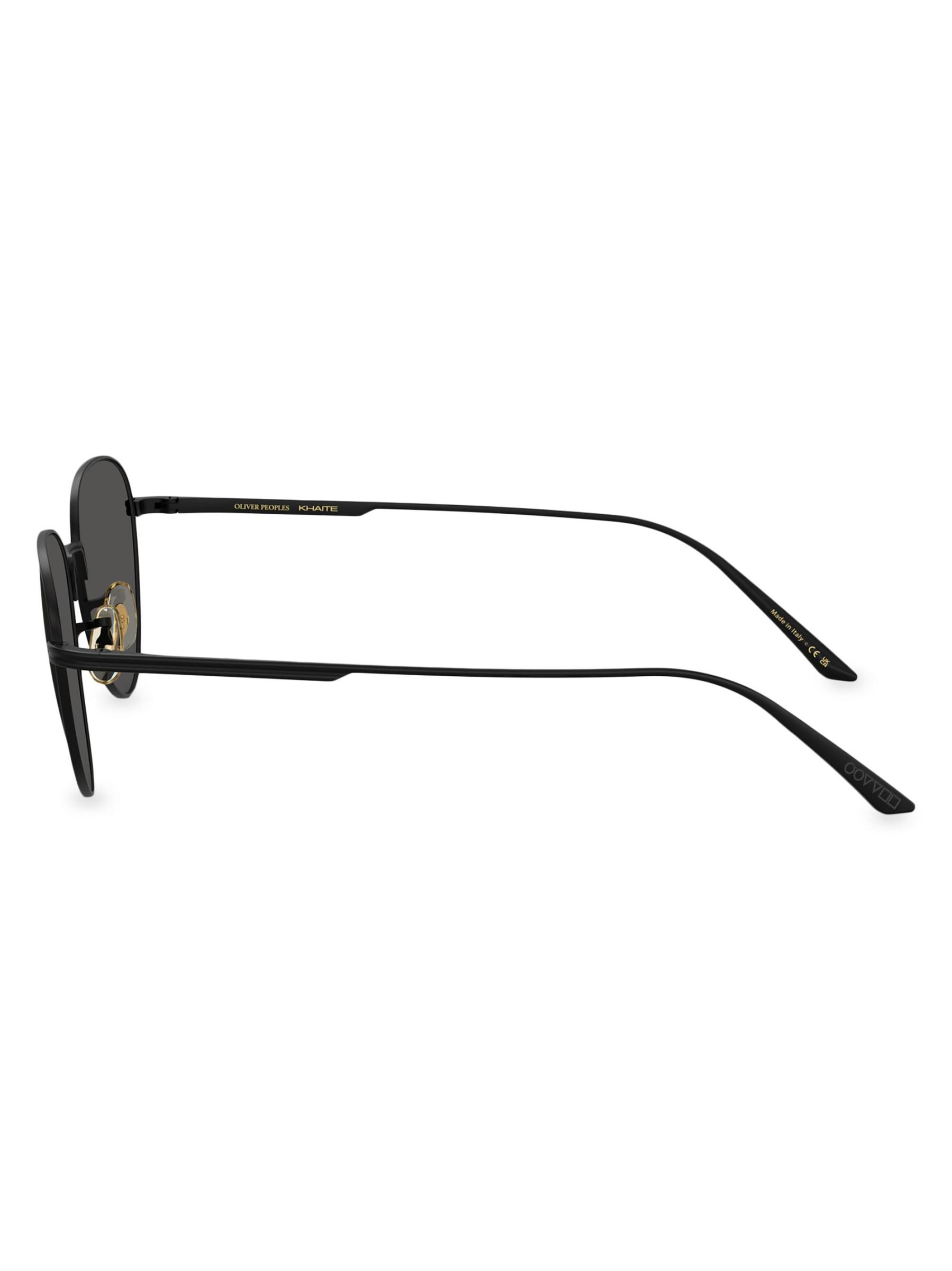 من تعاون أوليفر بيبولز x Khaite. تتميز هذه النظارات الشمسية من Oliver Peoples بإطارات على شكل عين القطة وعدسات صلبة ومصنوعة من الفولاذ.