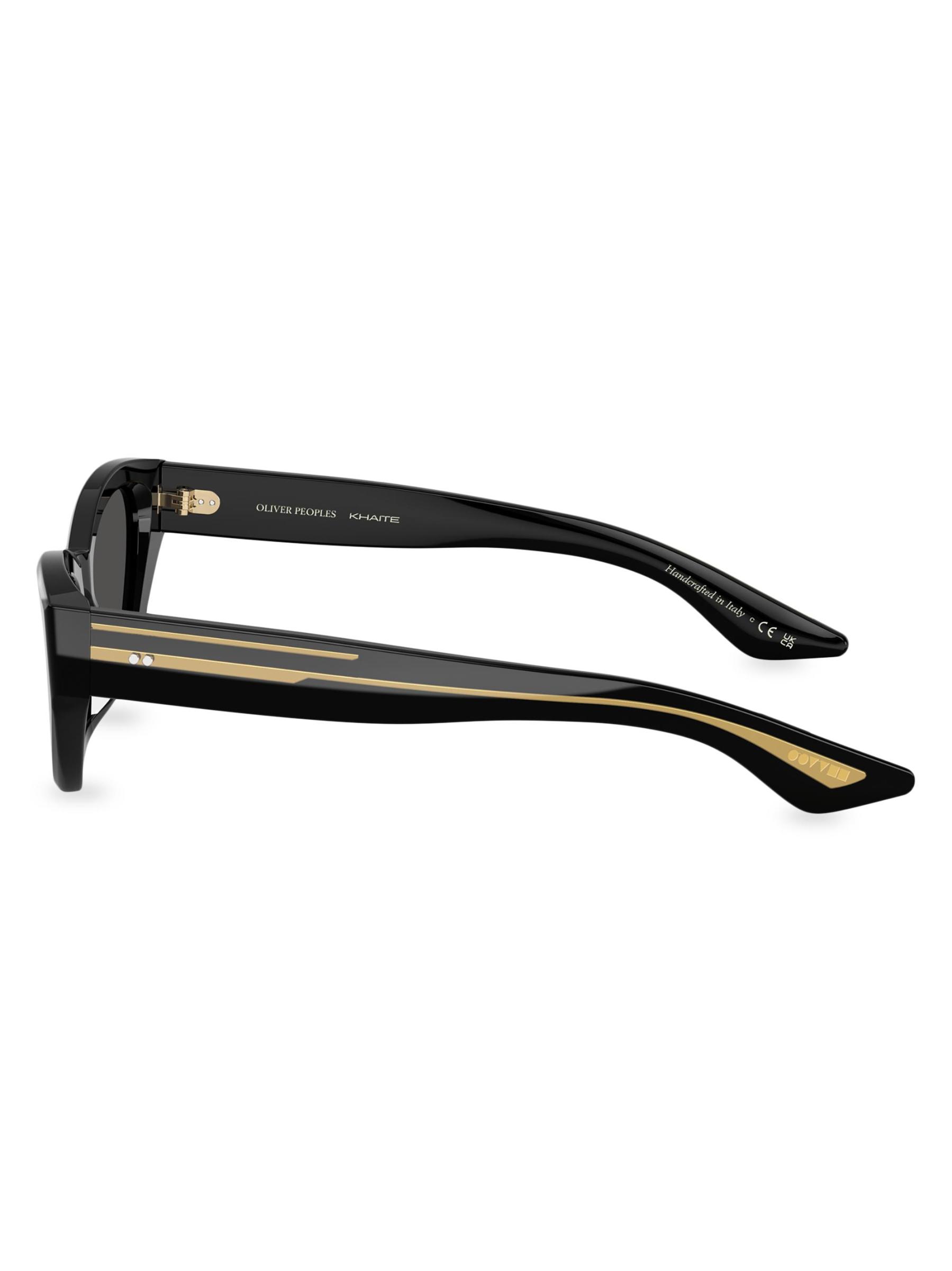 من تعاون أوليفر بيبولز x Khaite. تتميز هذه النظارات الشمسية من Oliver Peoples، المصنوعة في إيطاليا، بتصميم أنيق على شكل عين القطة وعدسات صلبة، مما يوفر حماية كاملة من الأشعة فوق البنفسجية.