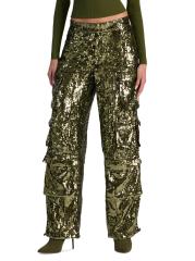 بنطال كارغو فضفاض مزيّن بالترتر من أوليمبيا