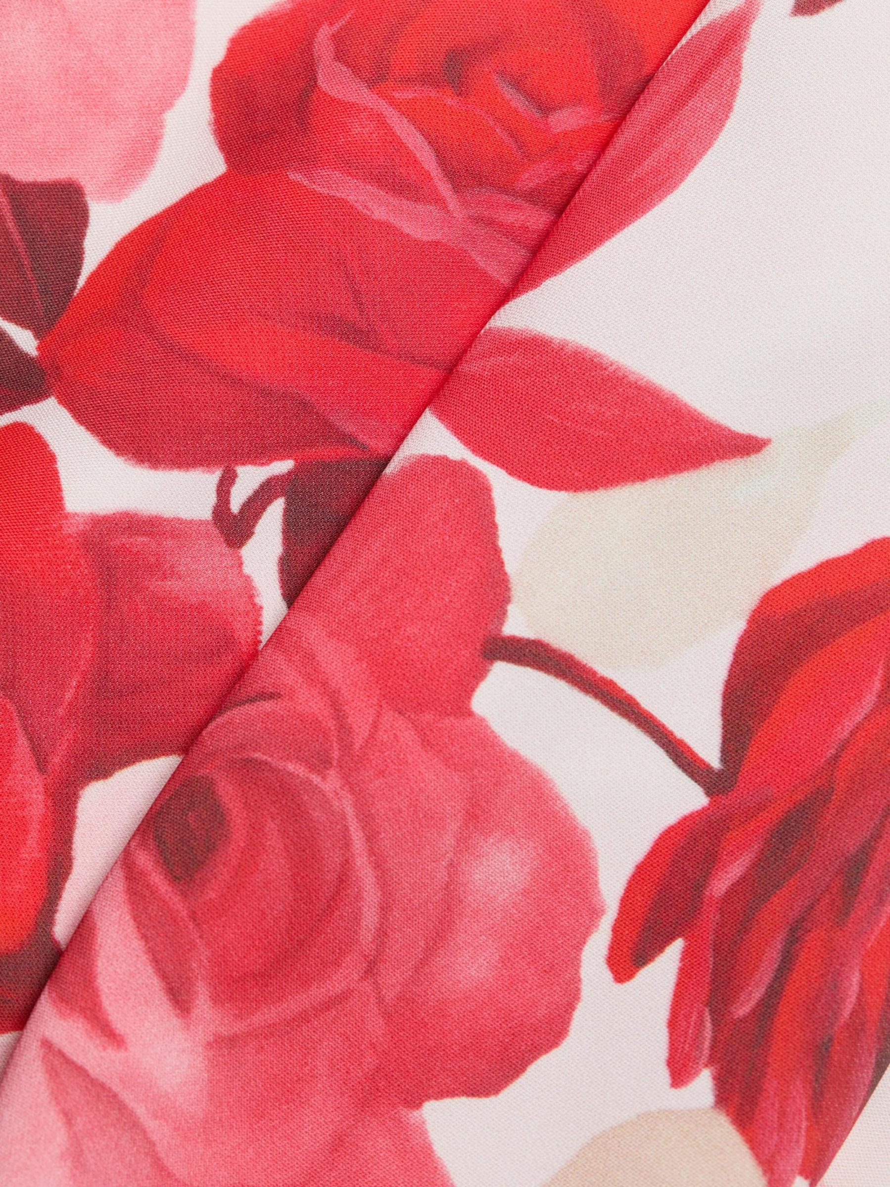 فستان أومبري مزين بالزهور بأكمام قصيرة على شكل حرف A