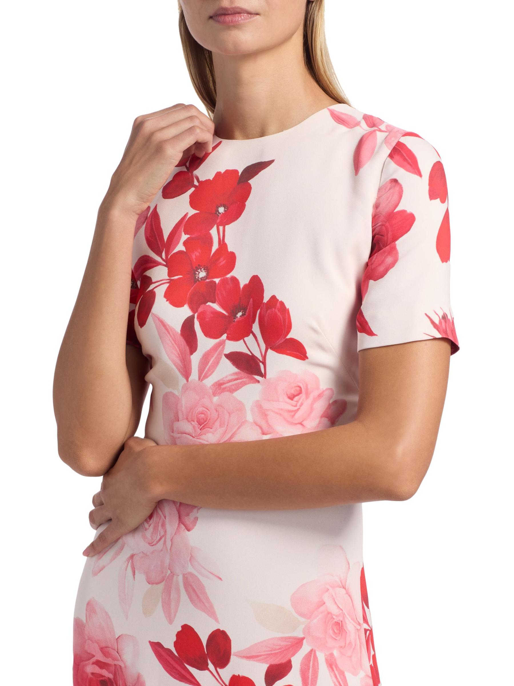 يتميز فستان Monique Lhuillier المصمم على شكل حرف A والمصنوع من الكريب بزخارف أومبري الزهرية وياقة مستديرة وأكمام قصيرة.رقبة مستديرة أكمام قصيرة إغلاق بسحّاب خلفي مخفي 97% فيسكوز/ 3% إليستين البطانة: 100% بوليستر تنظيف جاف صُنع في إيطاليا