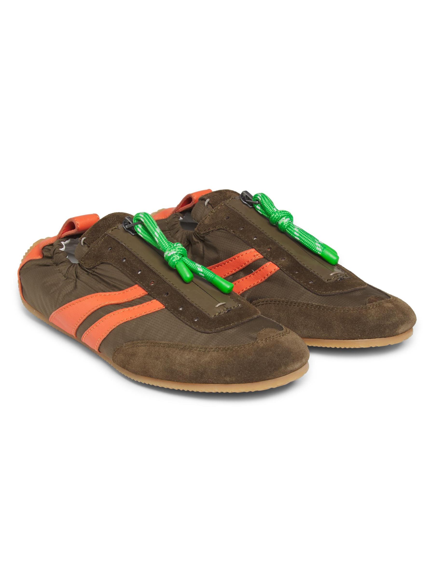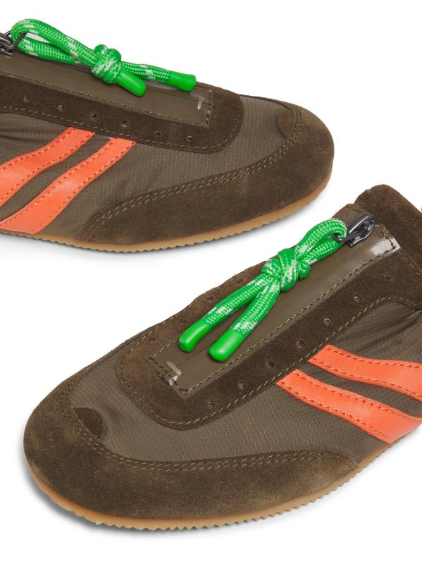 يتميز حذاء On The Go هذا من 3.1 Phillip Lim بزخرفة من الجلد المدبوغ وتصميم سفلي منخفض مزين بأربطة وخطوط متباينة.