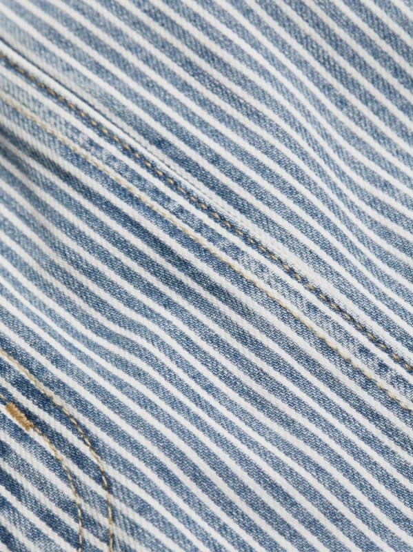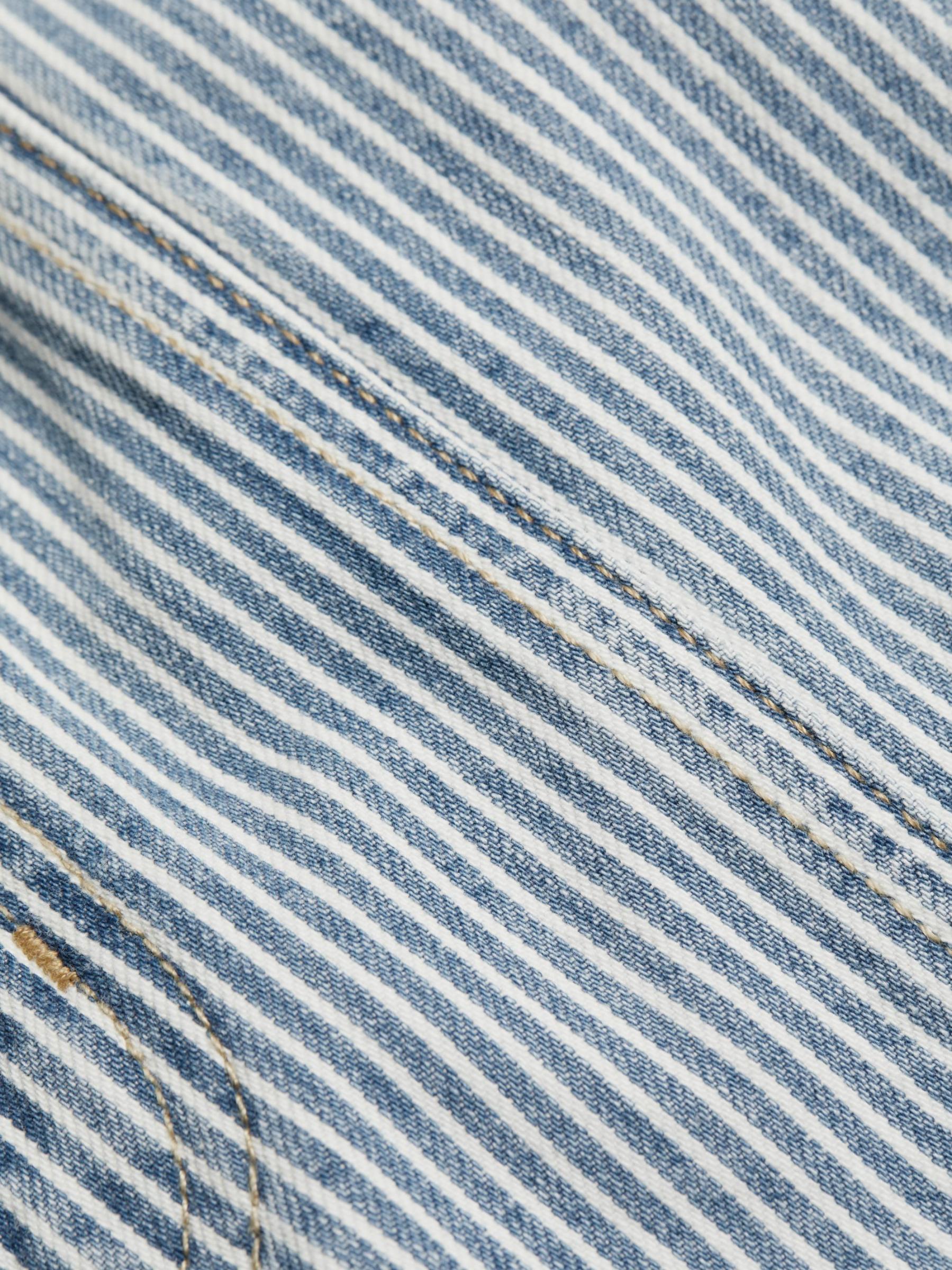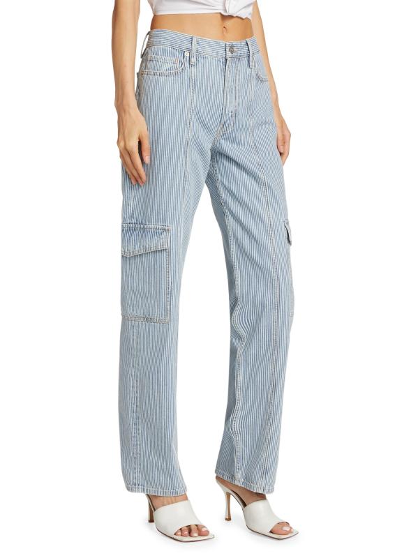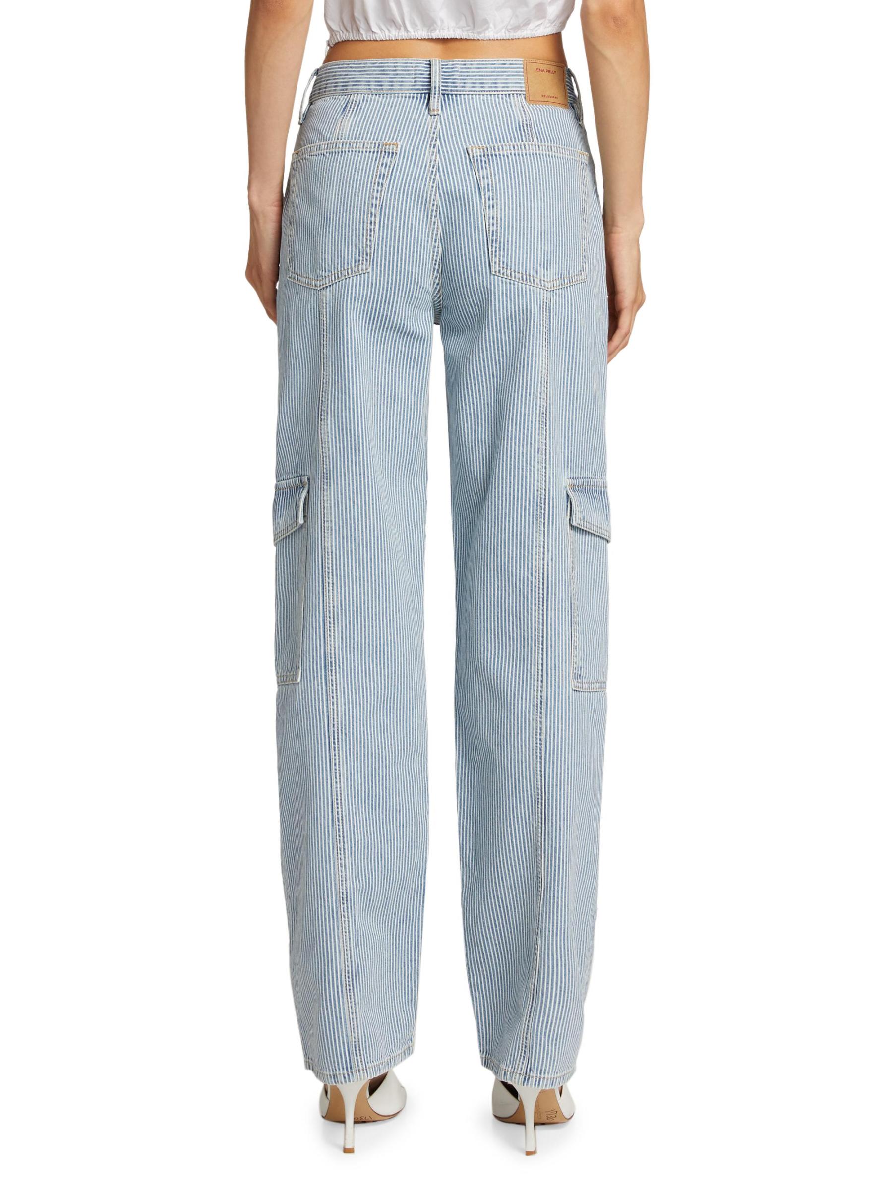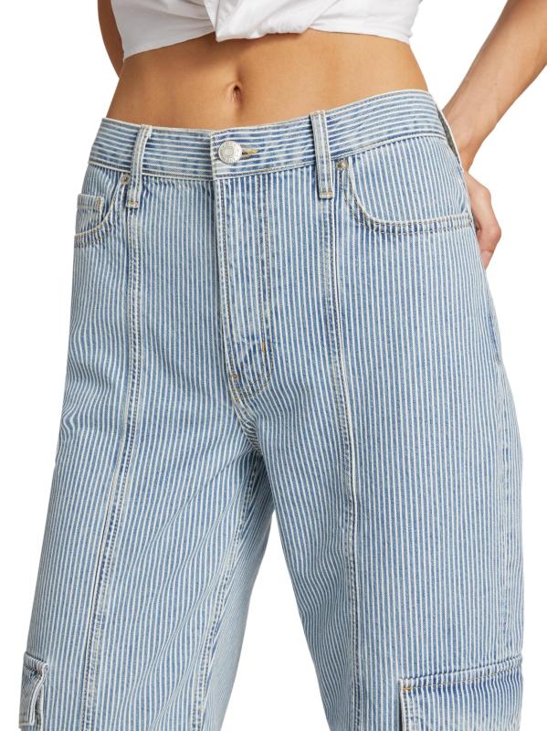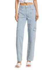من مجموعة أون ذا ووتر. يتميز بنطال ديانا العملي ذو الساق المستقيمة من Ena Pelly، المصنوع من الدنيم الصلب، ببنية ذات سبعة جيوب، وشعار خلفي مزين بشعار الماركة، وطباعة مخططة مصبوغة بالخيوط.