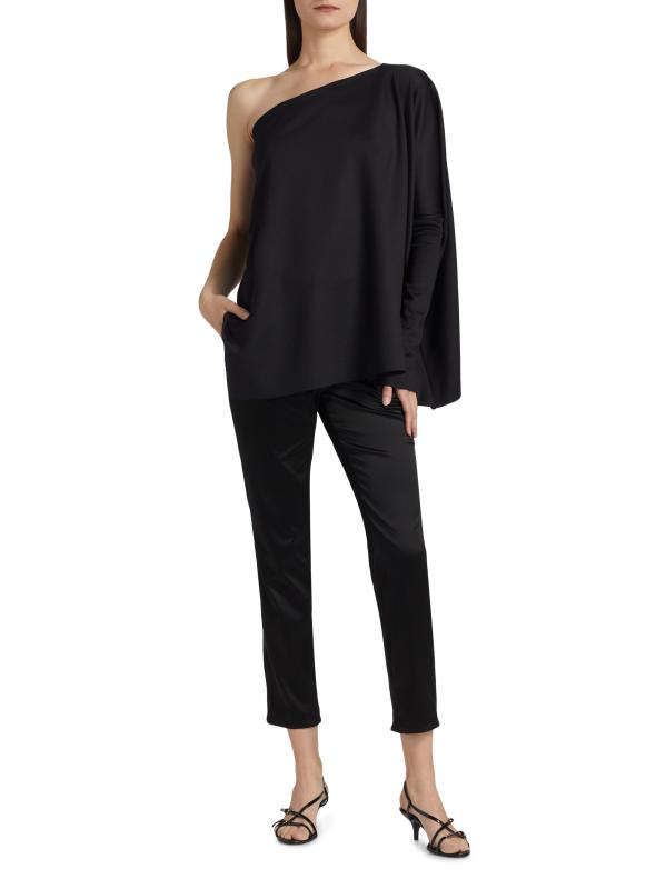 تتميّز بلوزة القفطان بكتف واحد من Rosetta Getty بتصميم منسدل ومريح يتميز بأكمام جرس طويلة.