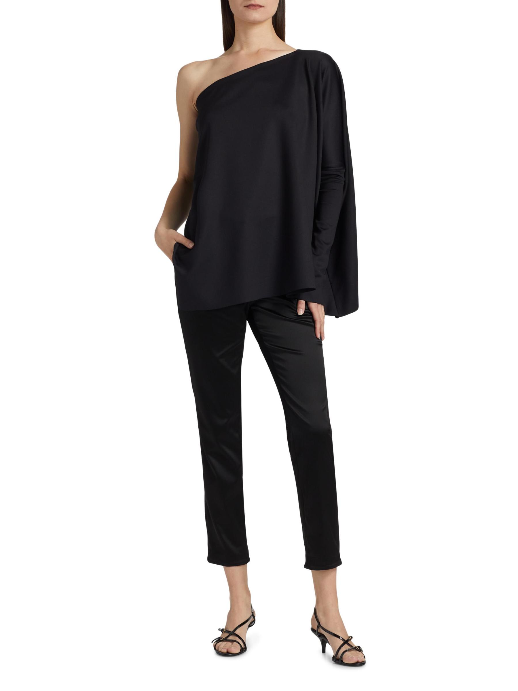 تتميّز بلوزة القفطان بكتف واحد من Rosetta Getty بتصميم منسدل ومريح يتميز بأكمام جرس طويلة.رقبة بكتف واحد أكمام طويلة واحدة إغلاق بسحّاب جانبي 82% نايلون/ 18% إليستين تنظيف جاف صُنع في الولايات المتحدة الأمريكية