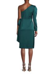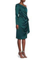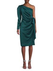 صُمم فستان كوكتيل Aidan Mattox هذا من الساتان في صورة ظلية بكتف واحد وأكمام طويلة على شكل ساق لحم الضأن. يضفي اللف غير المتماثل في جميع أنحاء الصدّار وتفاصيل ربطة جانبية شكلًا أنيقًا لهذا التصميم.