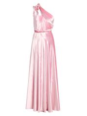 هذا الفستان الطويل من ألبرتا فيريتي مصنوع من الساتان ويتميز بتفاصيل ثنيات ملتوية على الصدّار مع تقويرة مقصوصة وزخارف زهرية على الكتف وفتحة ظهر غير متماثلة مع أحزمة ملتوية.