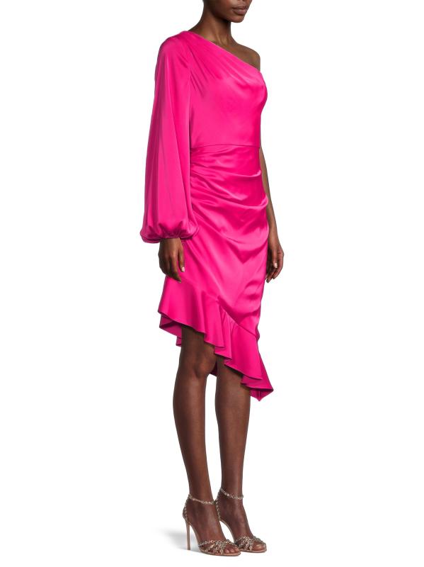 فستان ساتان متوسط الطول بكتف واحد
