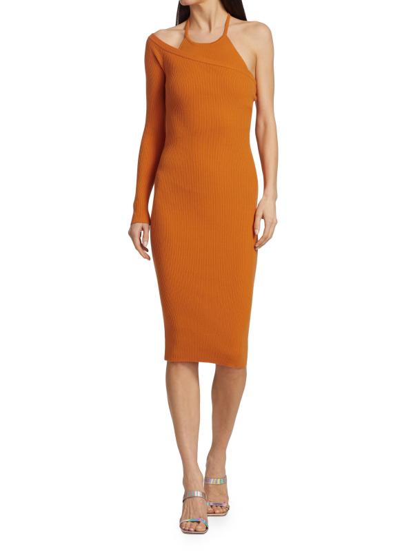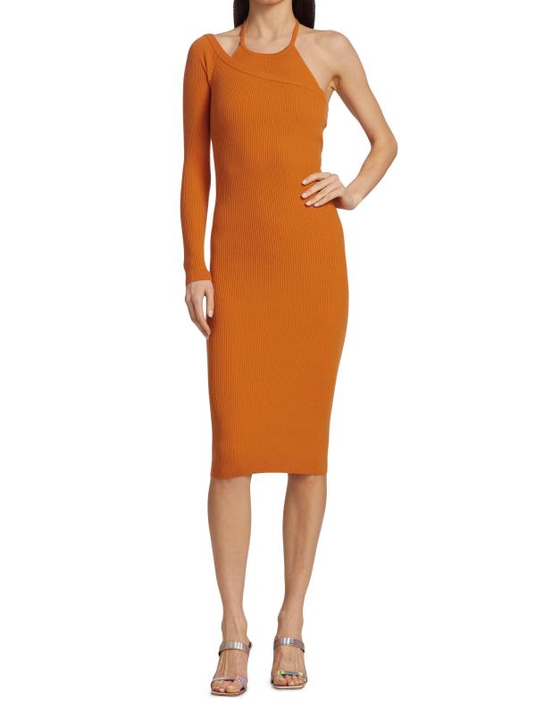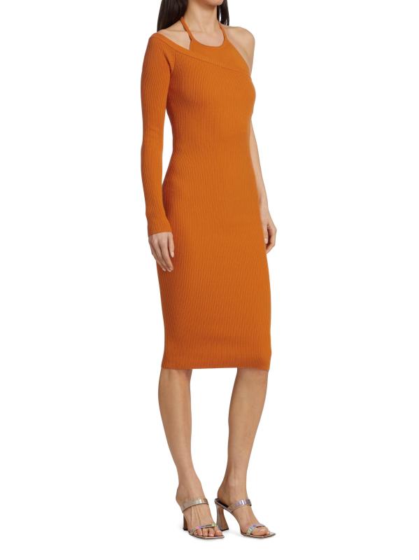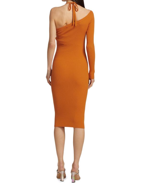 يتميز فستان Monse المتوسط بكتف واحد برقبة أنيقة قابلة للربط الذاتي ومصنوع من مزيج الصوف المضلع القابل للتمدد.