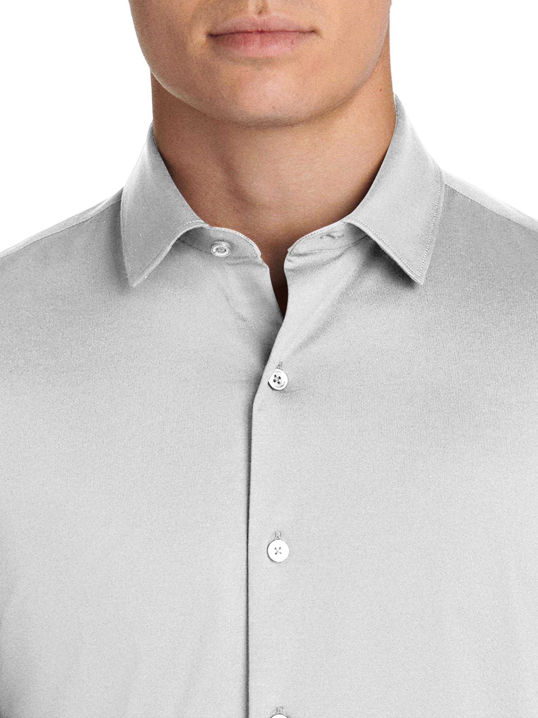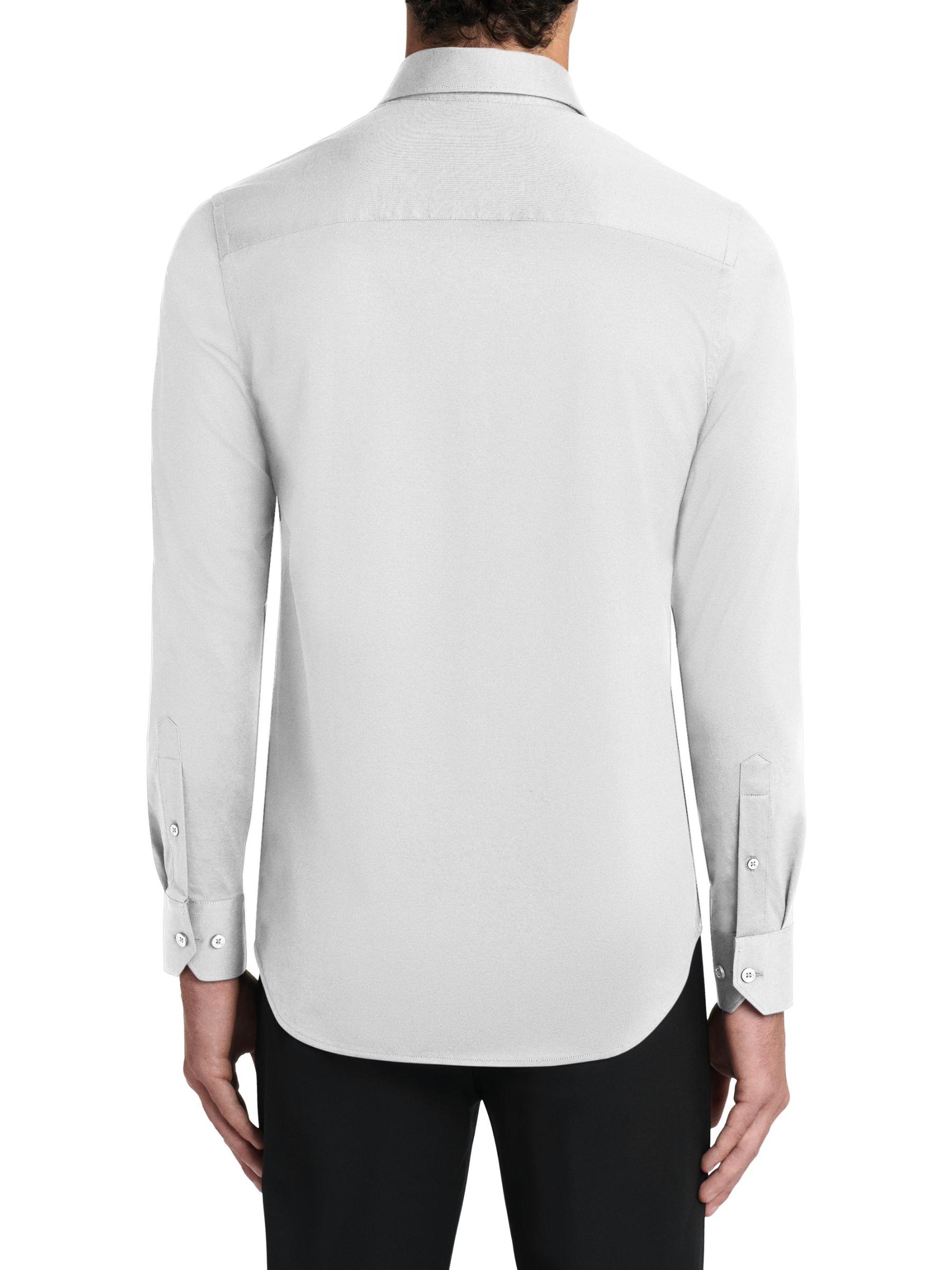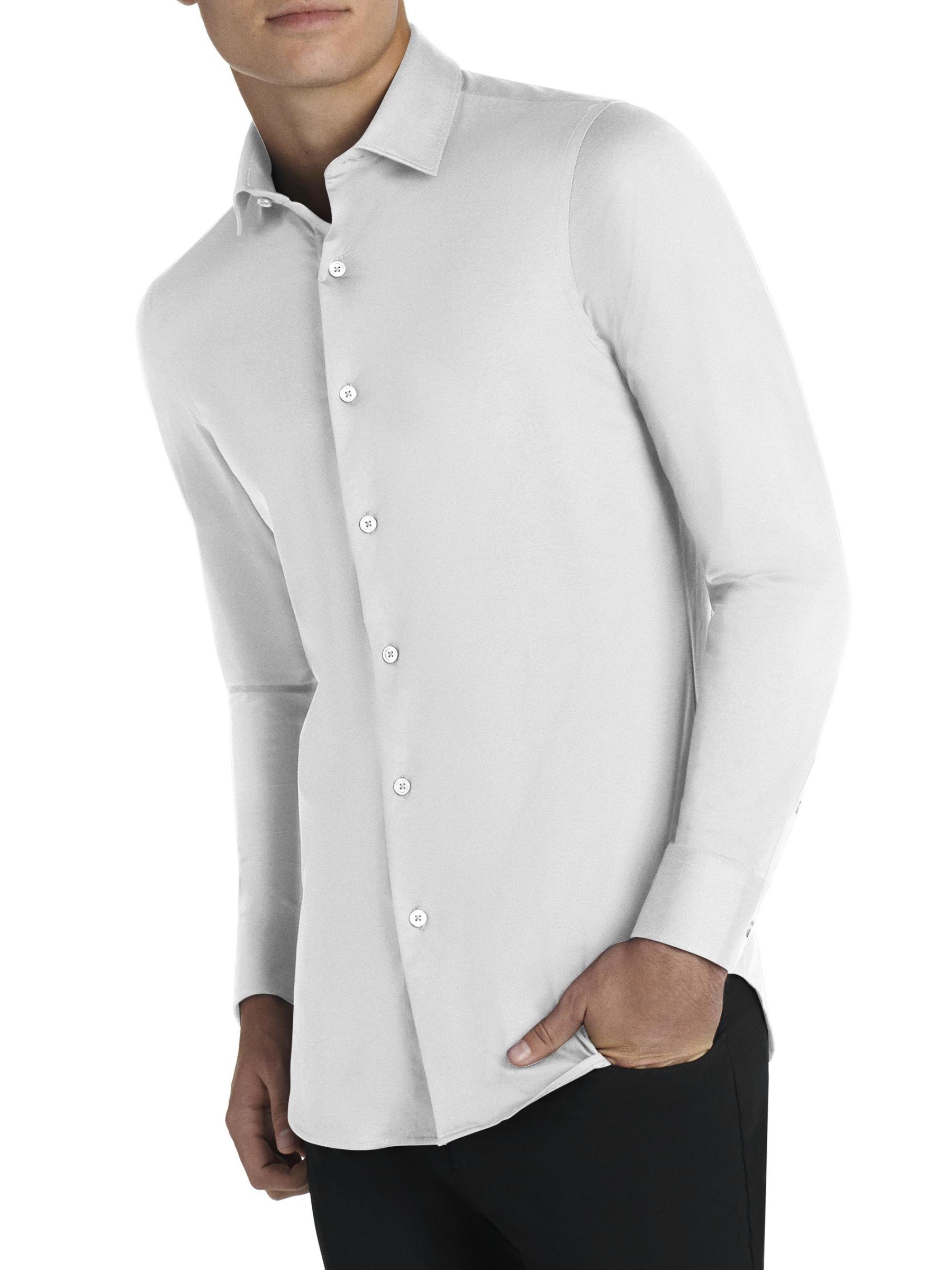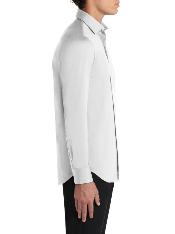 يتميز قميص Bugatchi المريح القابل للتمدد بنقشة الرخام بياقة تقليدية واسعة وأكمام طويلة وأساور مدببة.
