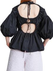 بلوزة مفتوحة من الخلف بأكمام منفوخة