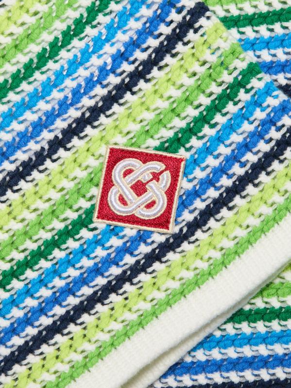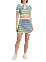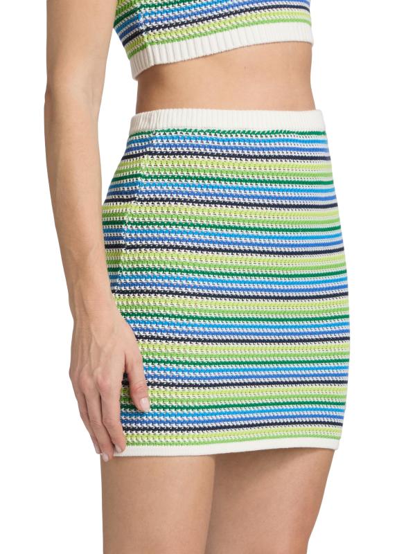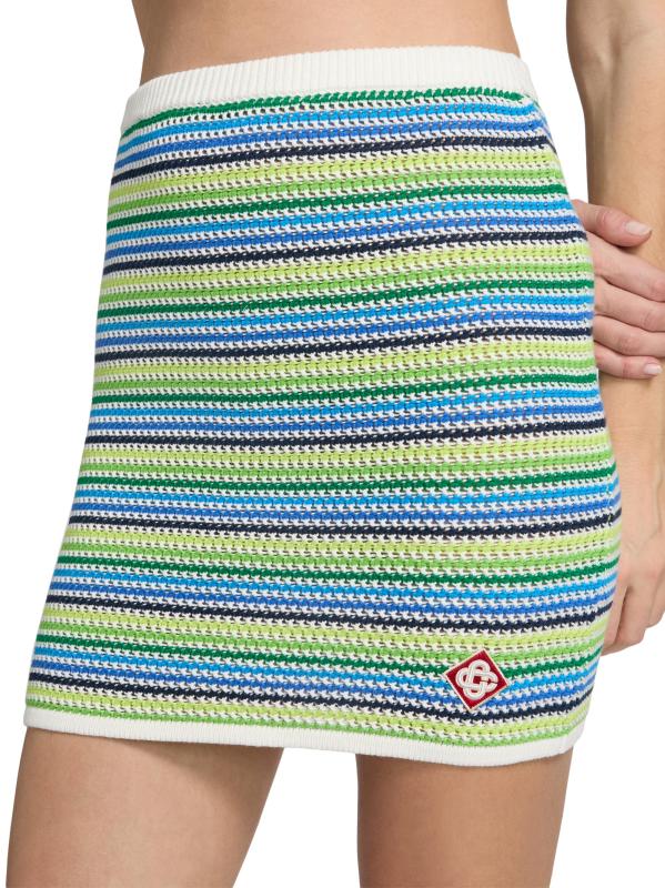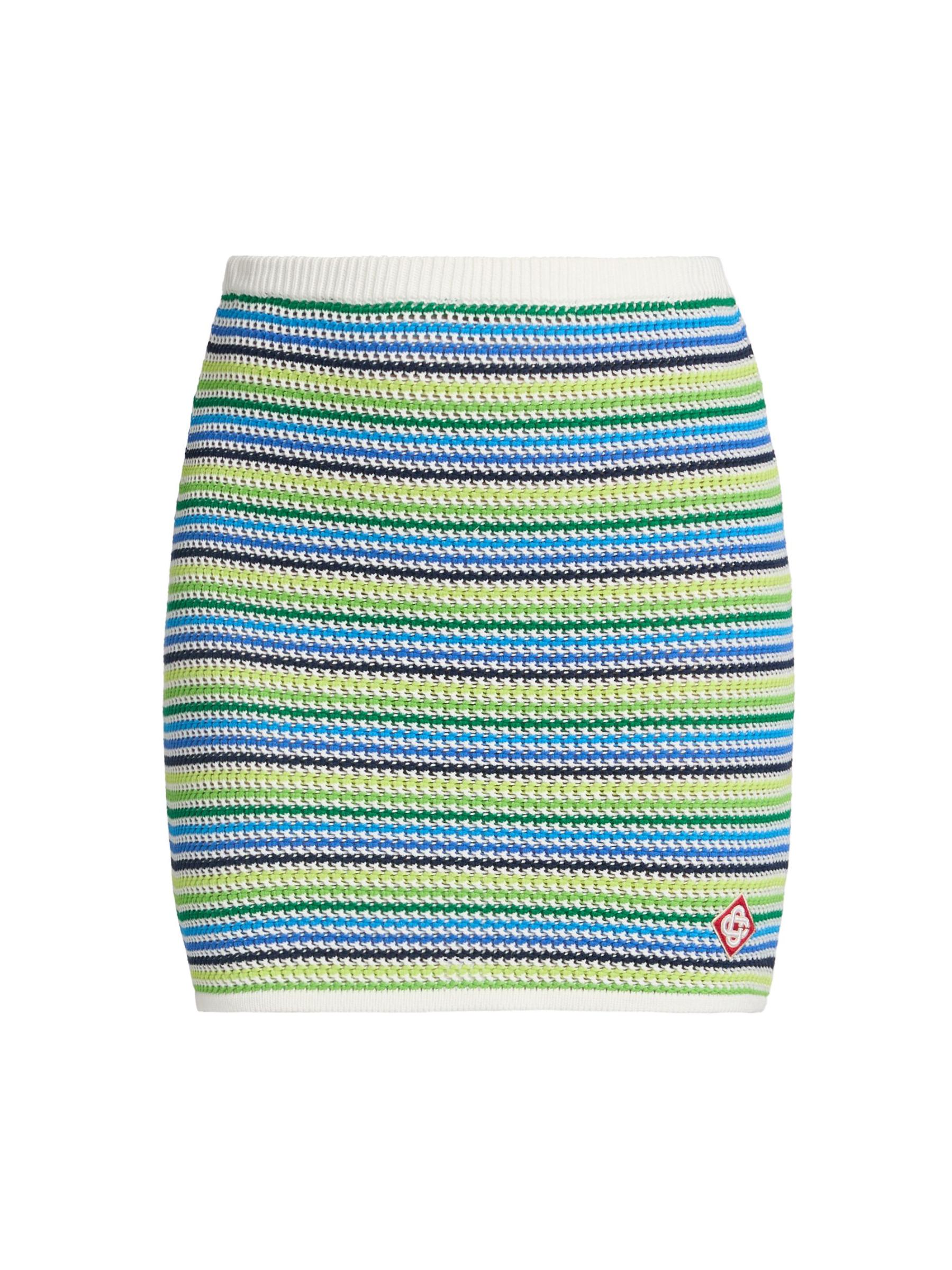 تم تصميم هذه التنورة القصيرة من الدار البيضاء بخطوط محبوكة ومفتوحة مع شعار العلامة التجارية المطرّز على الحافة.