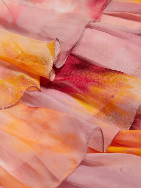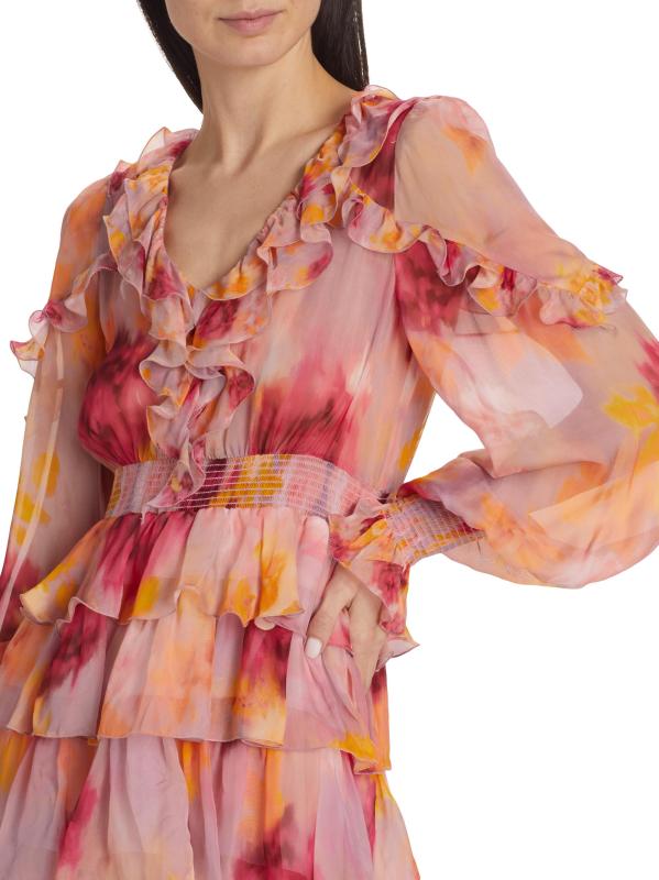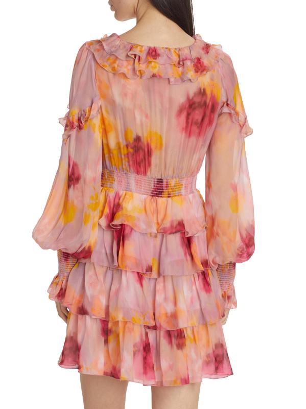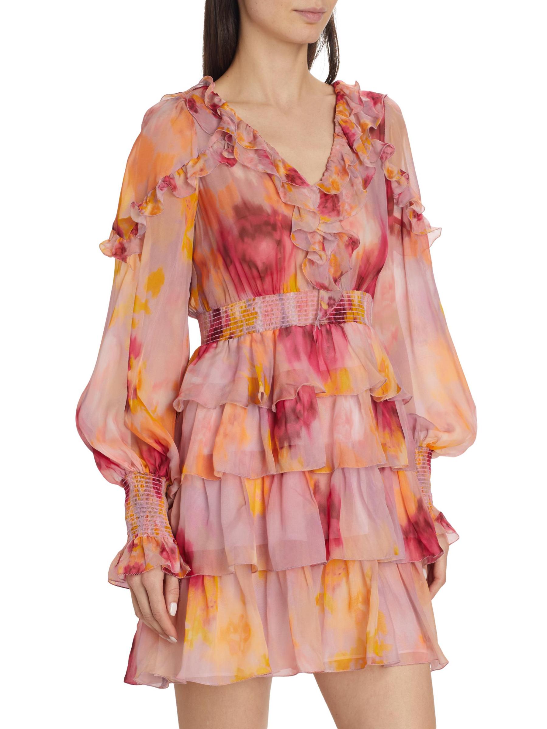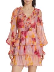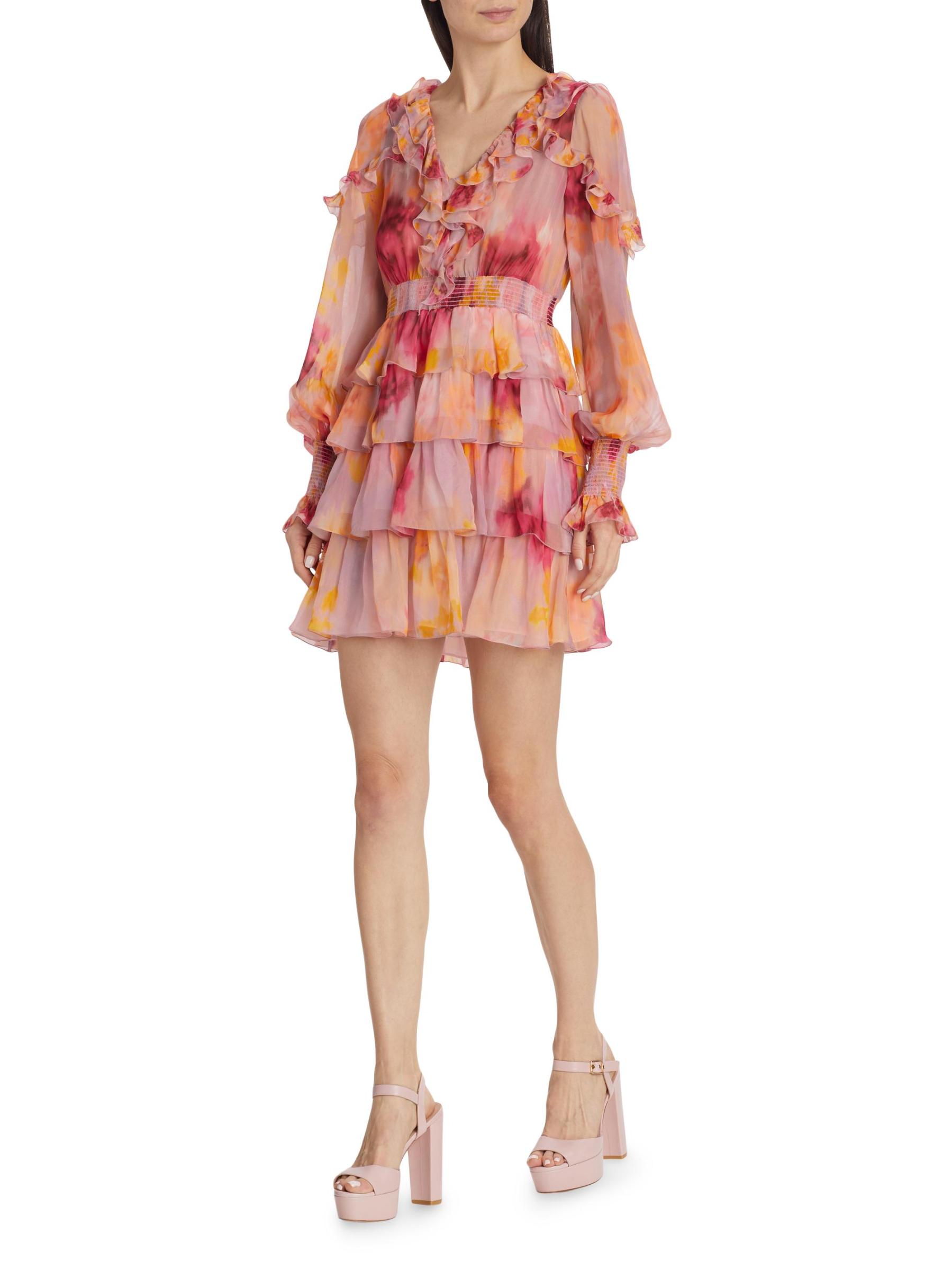 انغمس في الجاذبية الجذابة لأسلوب الأوركيد برقبة على شكل V من Marchesa Rosa، وهو فستان قصير مكشكش من مزيج الحرير الفاخر، ويتميز بكشكشة رائعة وأساور مطرزة وخط خصر جذاب.