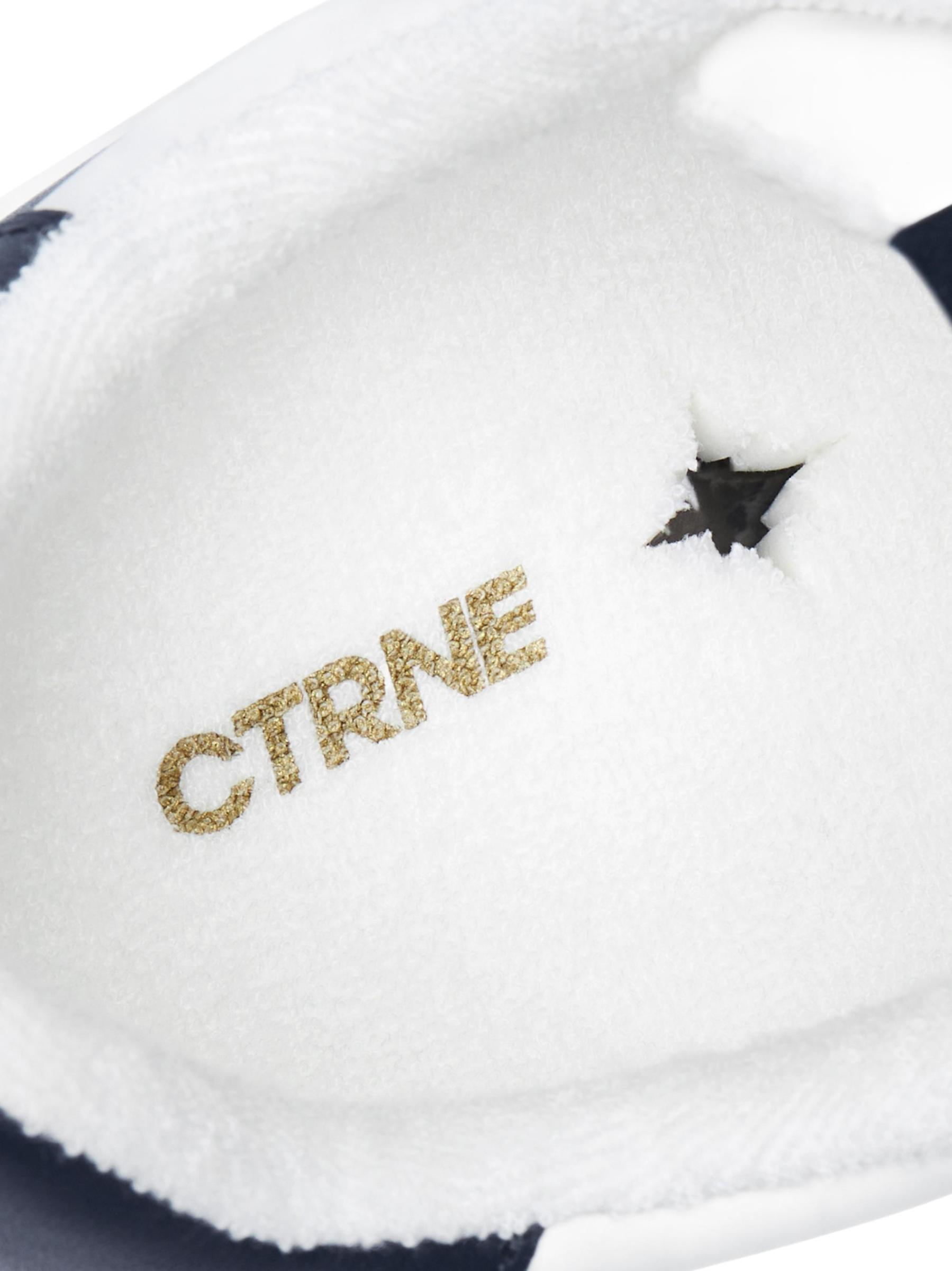 من مجموعة Orgonite. هذه الأحذية الرياضية ذات الرقبة المنخفضة من CTRNE مصنوعة من الجلد الملون والجلد المدبوغ وتجلس على نعل منحوت مدمج بكريستال السيترين.