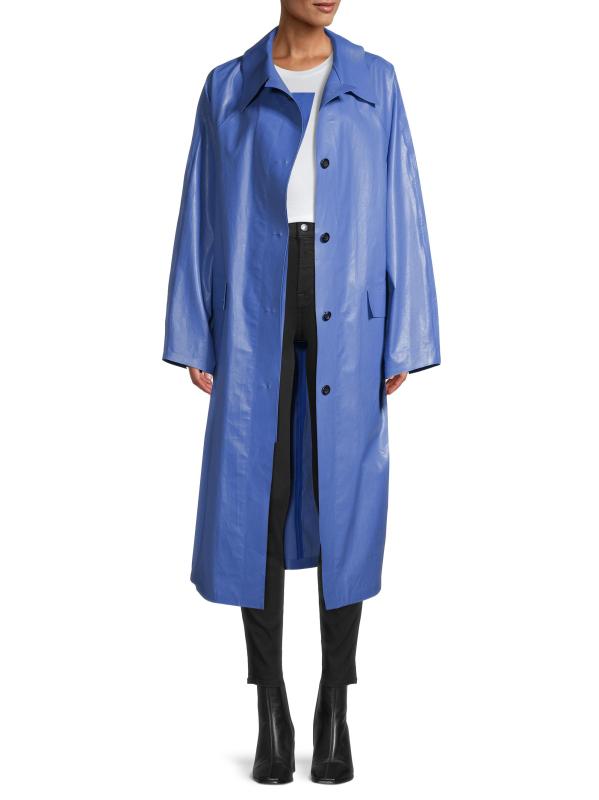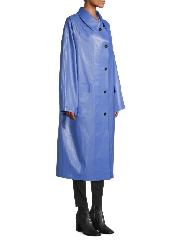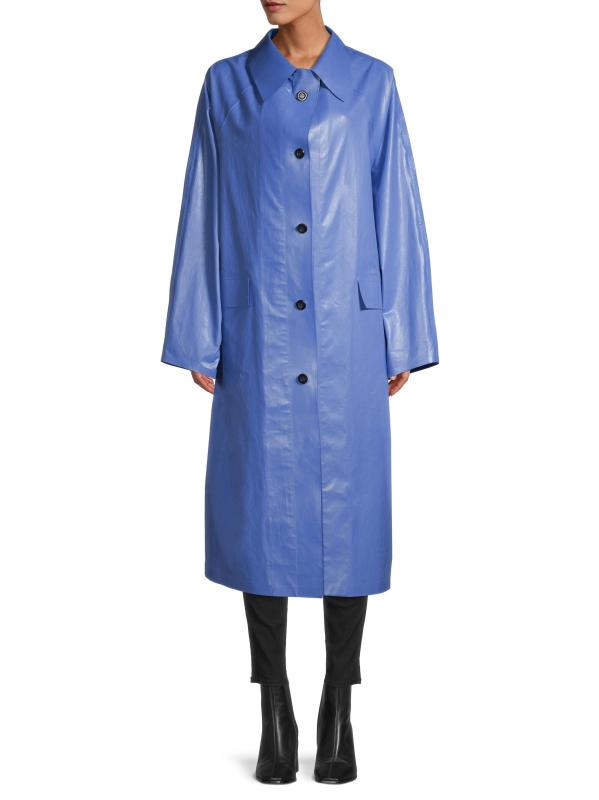 هذا المعطف الطويل مصنوع من مزيج القطن المطلي بالزيت في شكل صندوقي مريح.