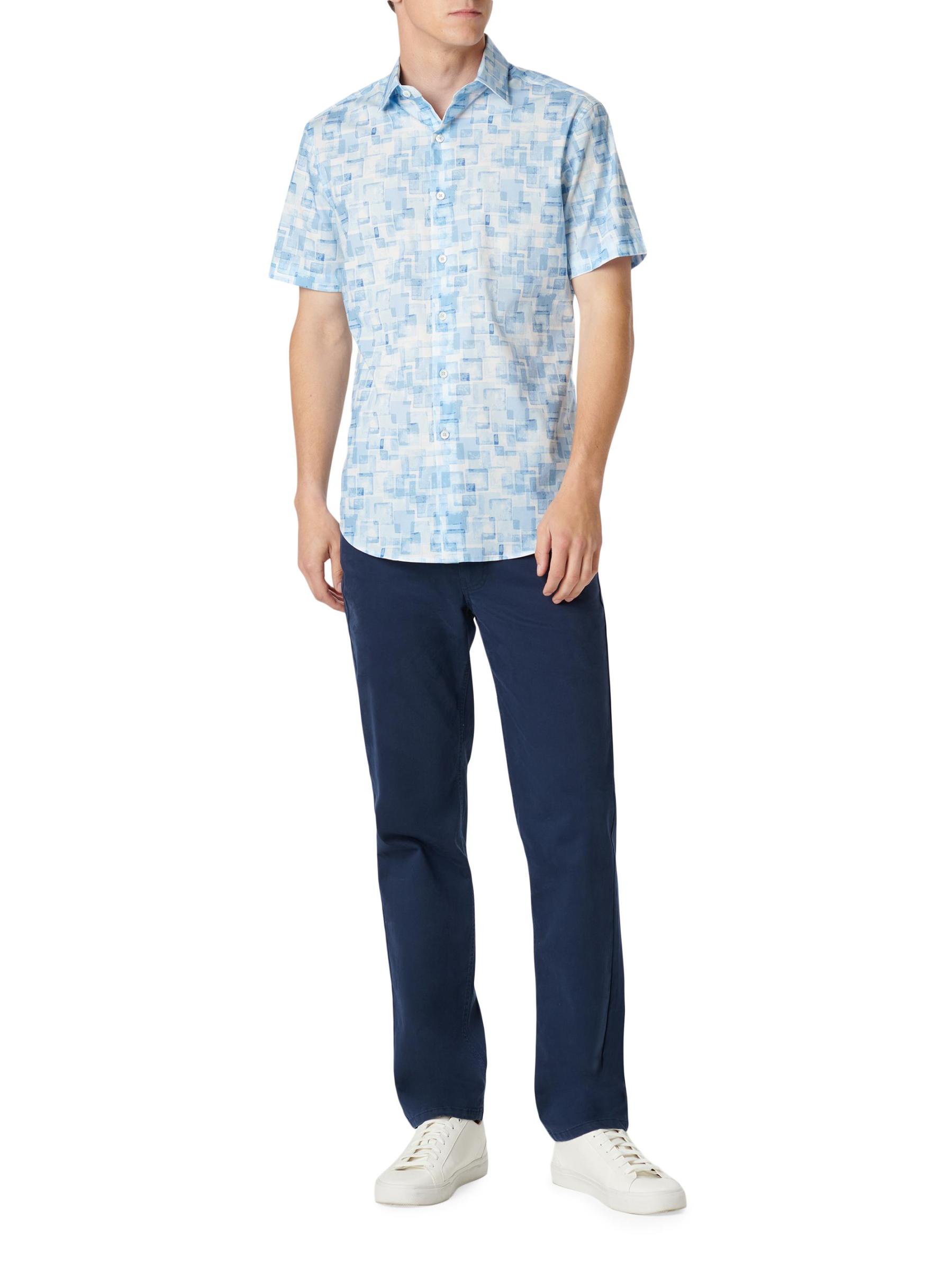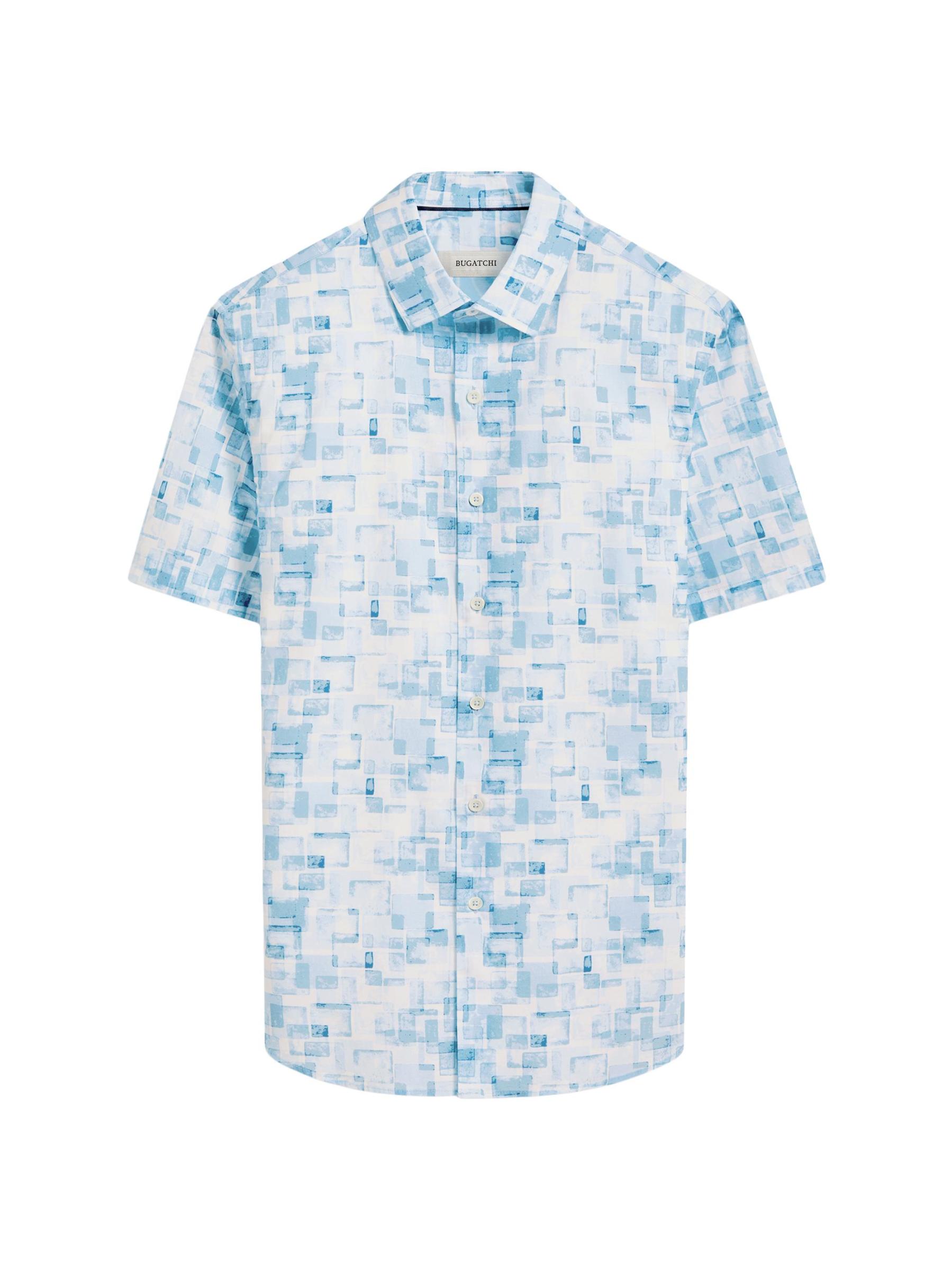 يتميز قميص Orson ذو الأزرار الأمامية من Bugatchi بنقشة هندسية مجردة. يوفر التصميم المنسوج المصنوع من القطن المرن ملاءمة سهلة.طوق سبريد أكمام قصيرة فتحة أمامية بأزرار 97% قطن/ 3% إليستين يُغسل في الغسالة مستوردة