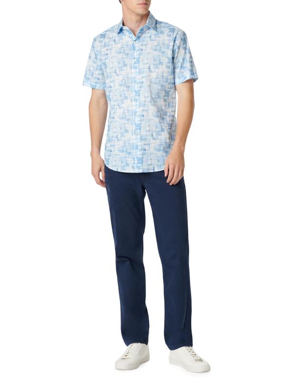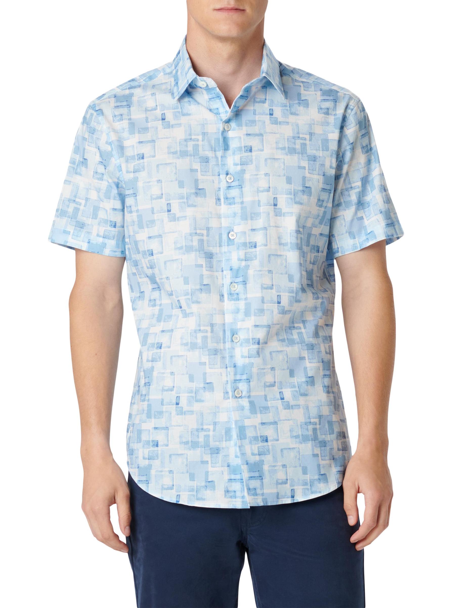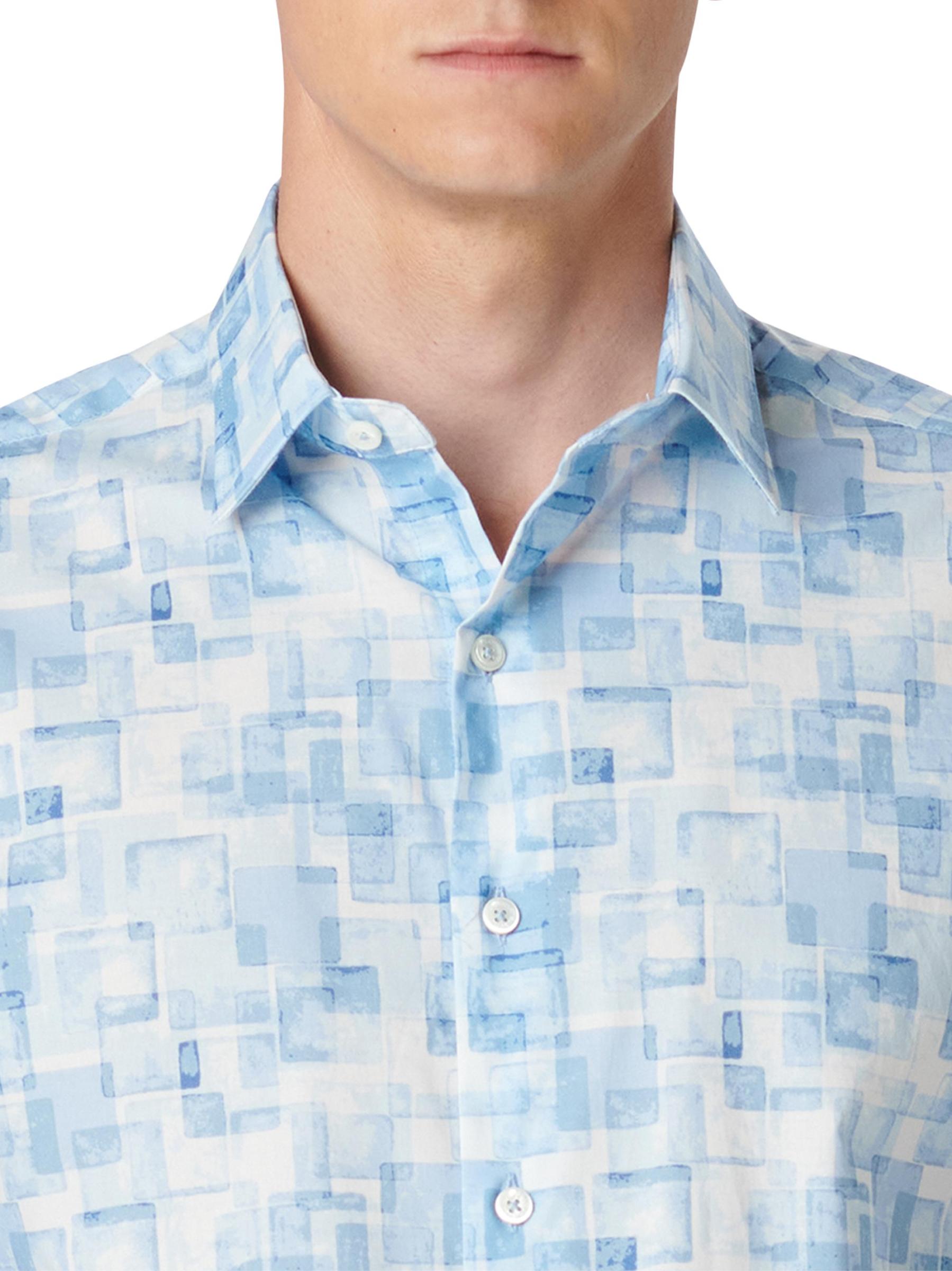 يتميز قميص Orson ذو الأزرار الأمامية من Bugatchi بنقشة هندسية مجردة. يوفر التصميم المنسوج المصنوع من القطن المرن ملاءمة سهلة.