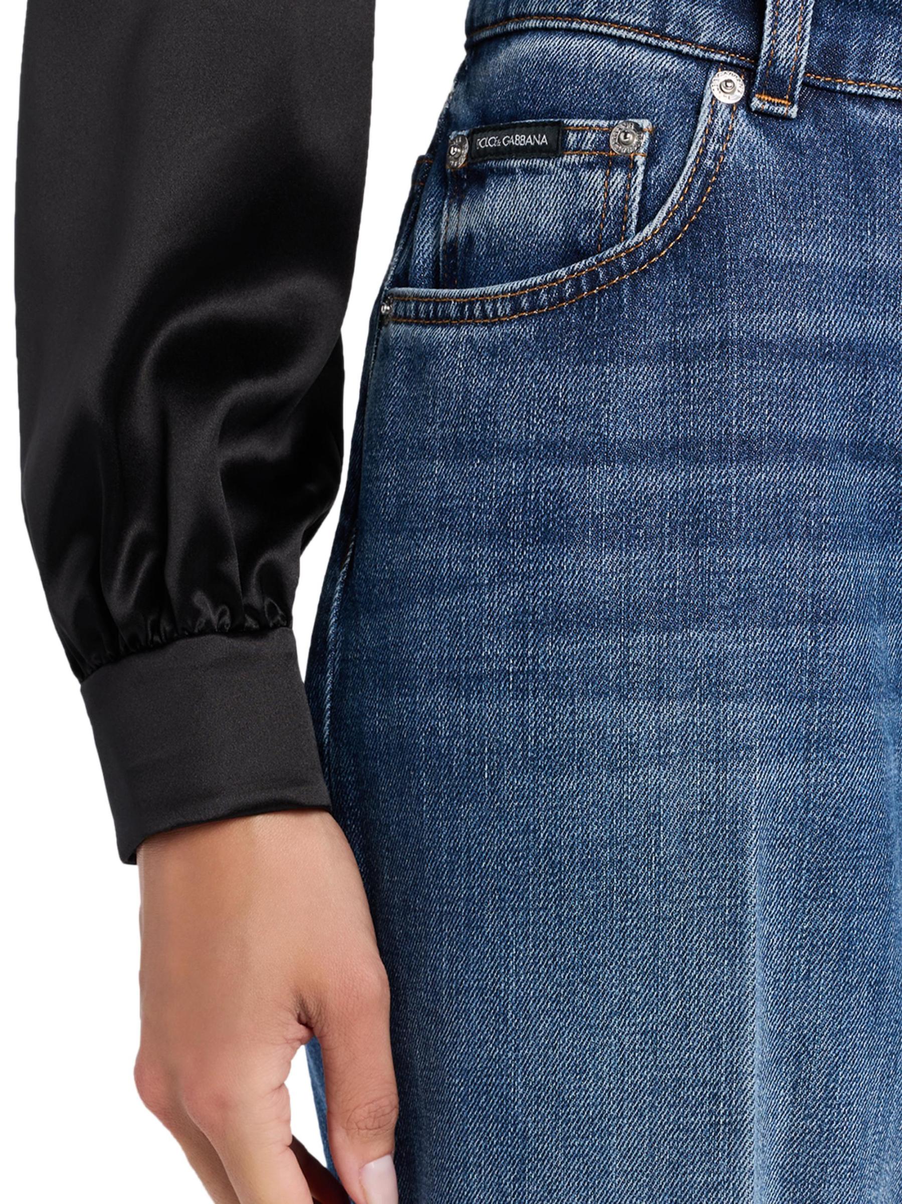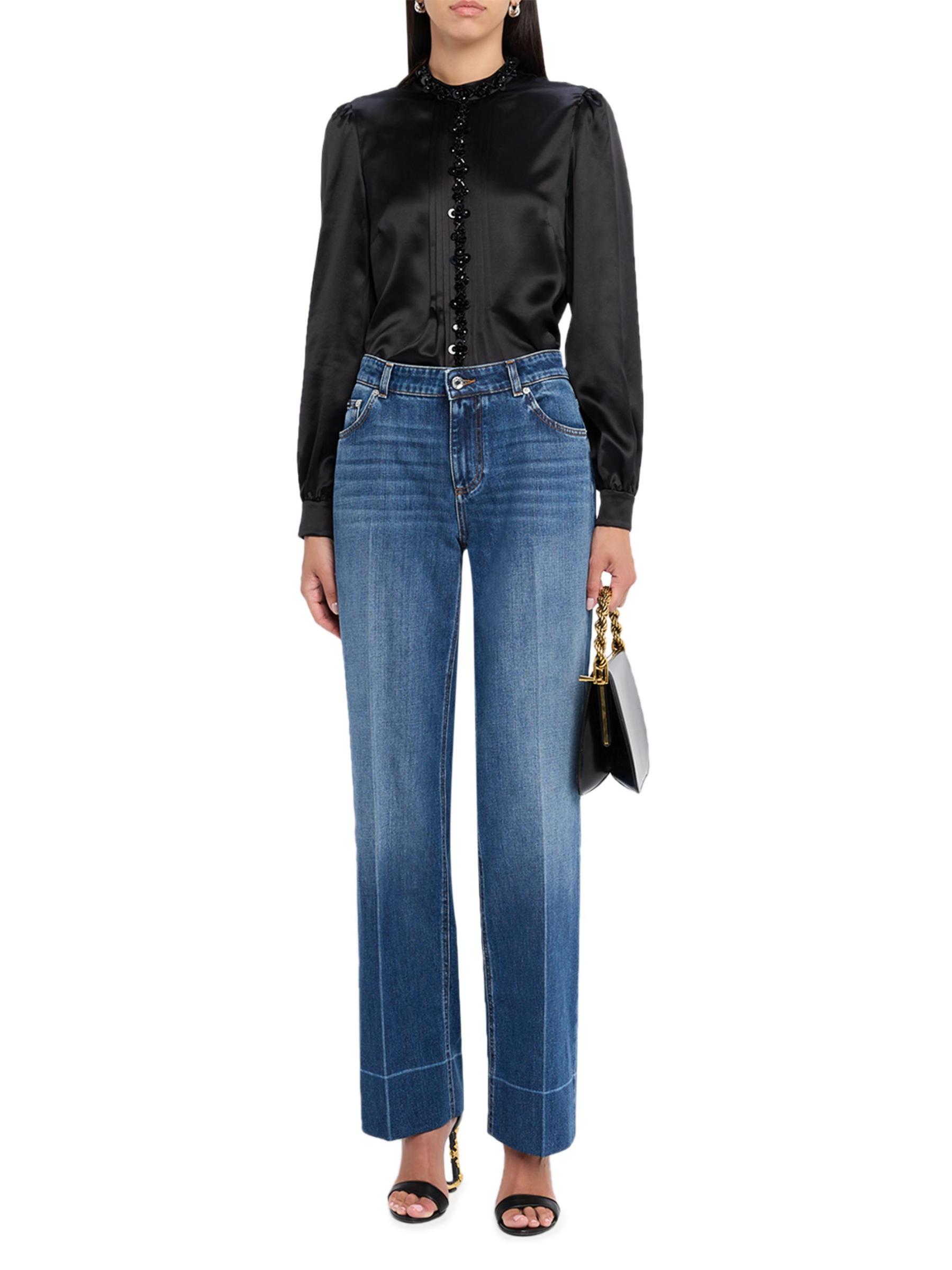 يتميّز جينز أورتا من Dolce&Gabbana بتصميمه المصنوع من الدنيم الذي تم غسله وخياطه للحصول على إطلالة مفعمة بالحيوية، ويتميز بتصميم أنيق عند منتصف الارتفاع وأرجل مستقيمة.
