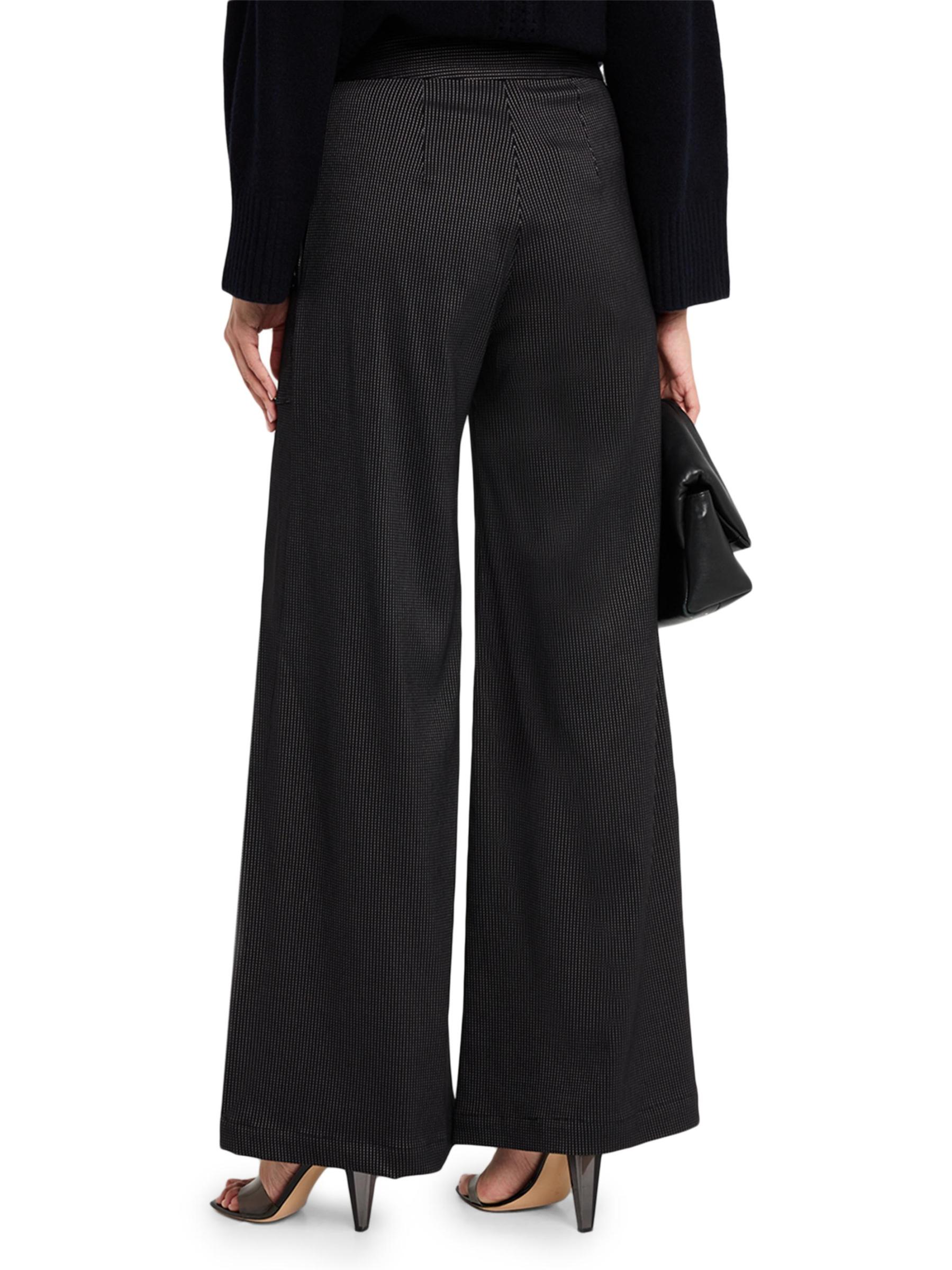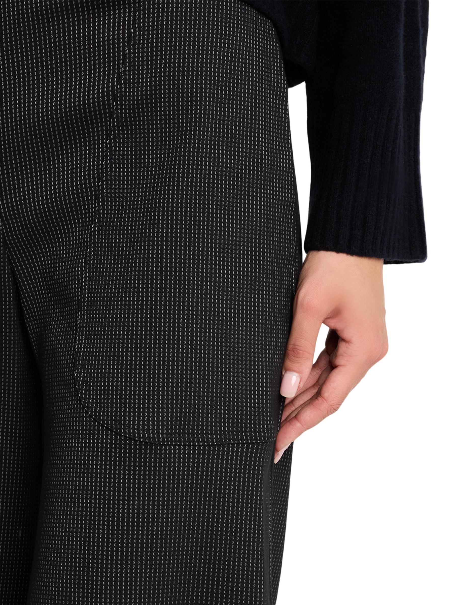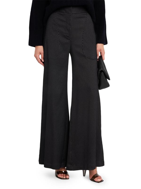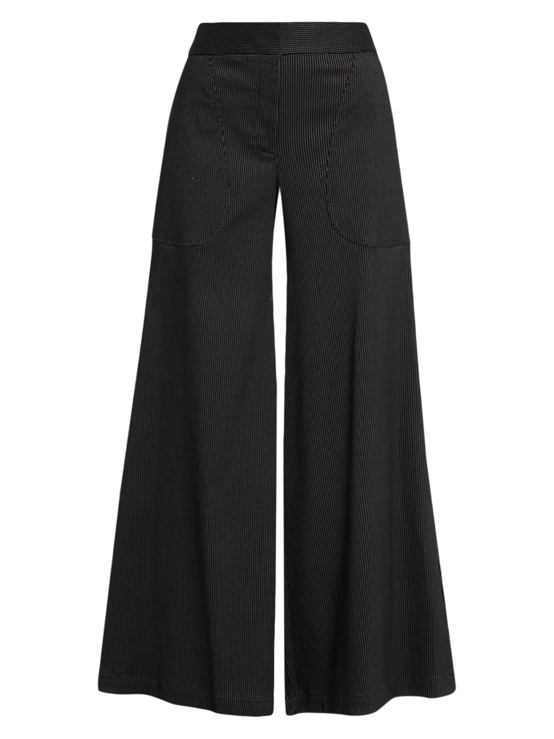 تم تصميم هذا البنطال ذو الأرجل العريضة من أوسلو من JBQ، والذي تم تصميمه بارتفاع متوسط، بنمط متقلب دقيق وجيوب مرقعة.