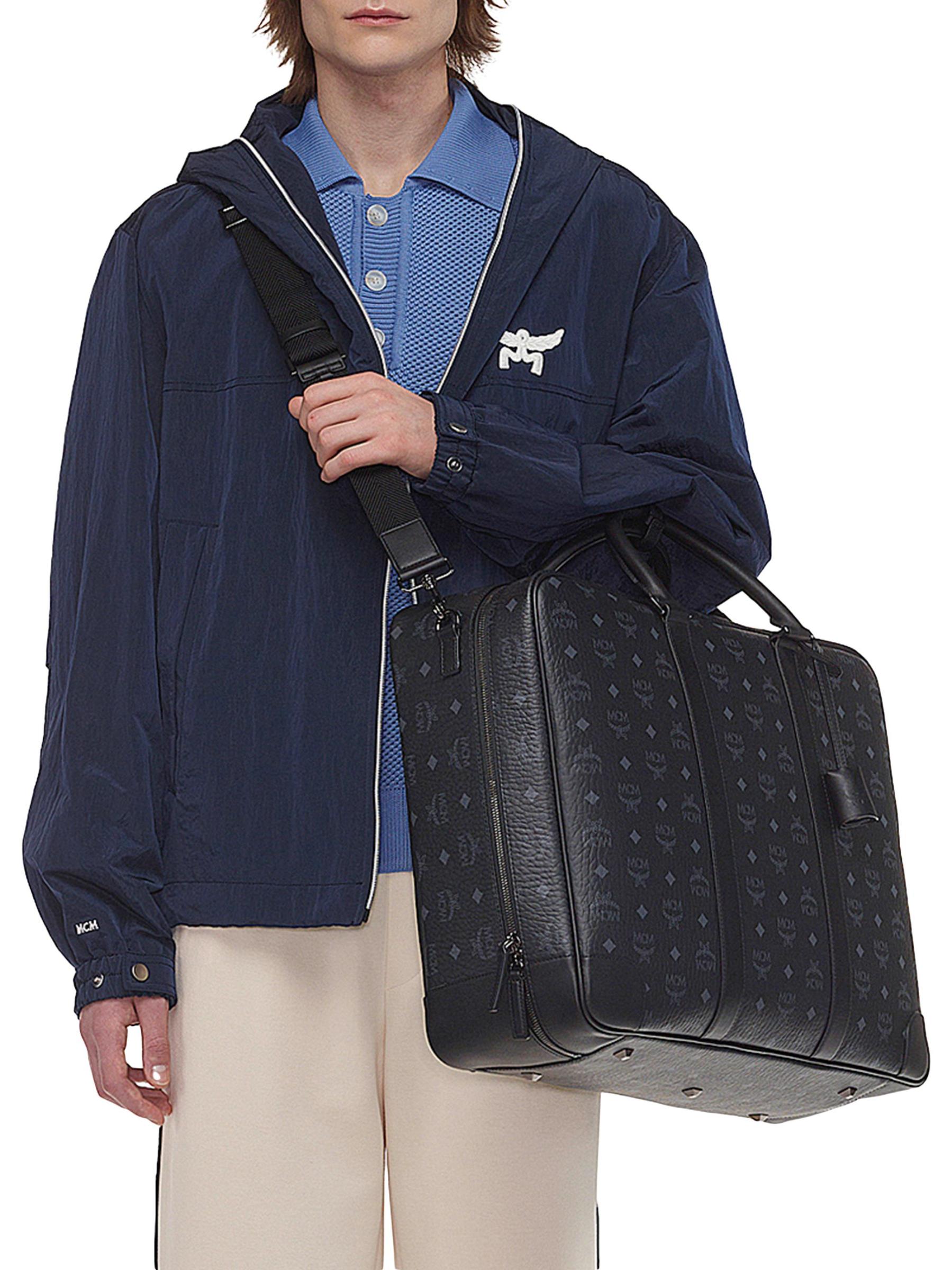 حقيبة Ottomar الكبيرة من MCM مصنوعة من قماش visetos المميز للعلامة التجارية. تحتوي الحقيبة المُزينة بالجلد على مقبضين علويين وسحّاب علوي للإغلاق.