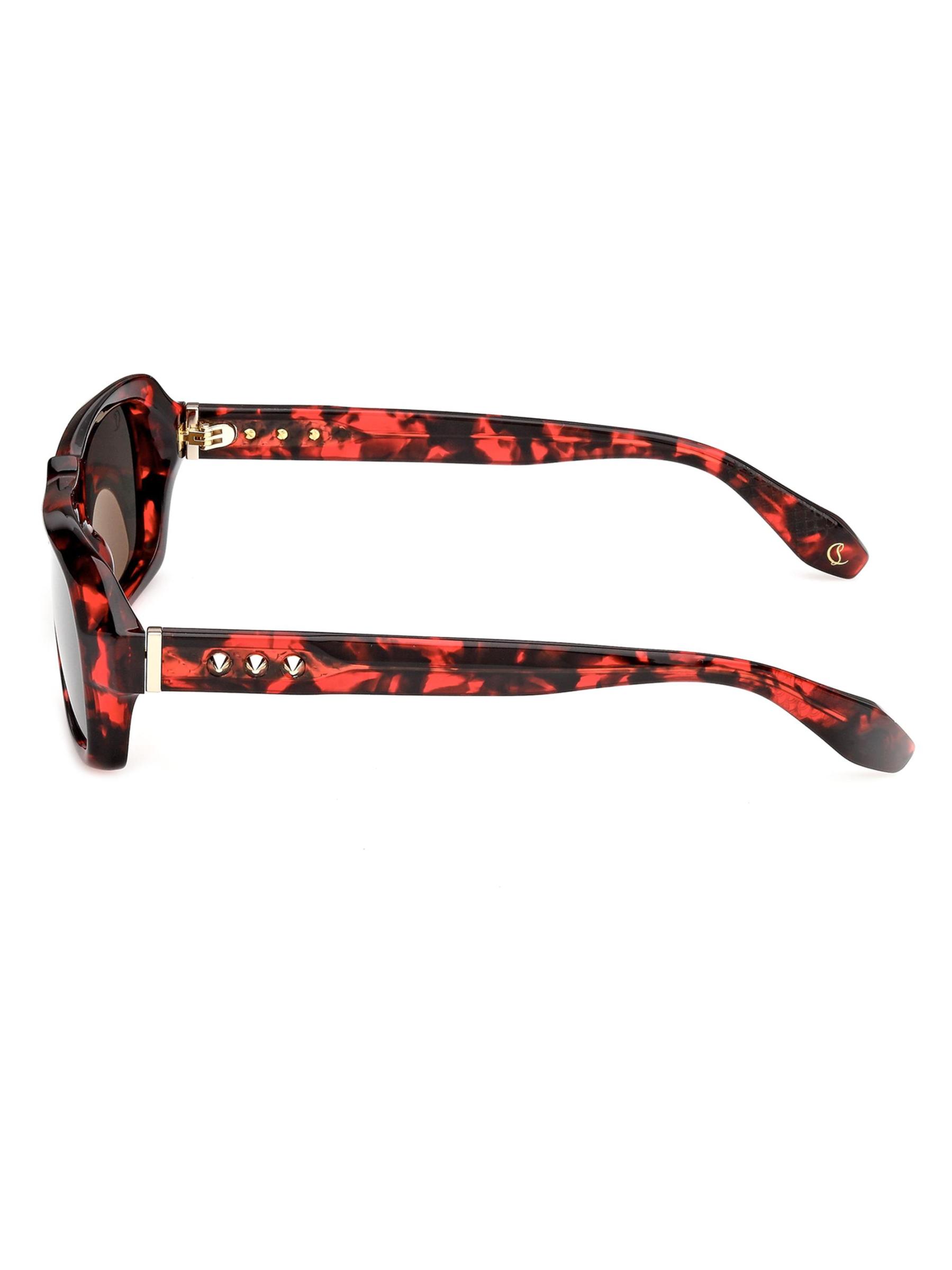 تتميز نظارات Our Georges الشمسية من كريستيان لوبوتان بتصميم مستطيل مع مسمار مصبوب عند الحاجب. تم تزيين نمط السلحفاة الجريء باللون الأحمر بثلاثة مسامير مميزة في كل معبد.