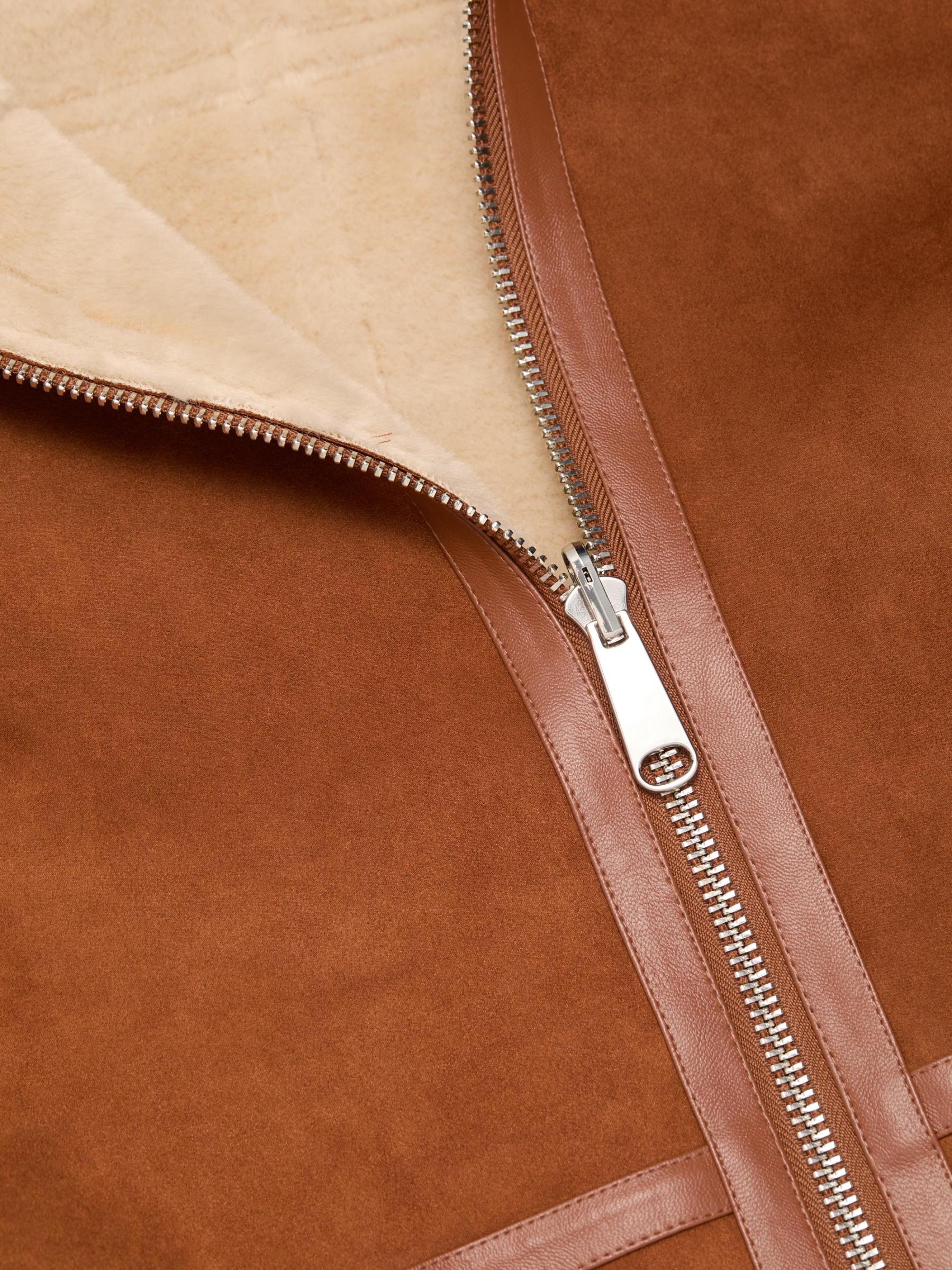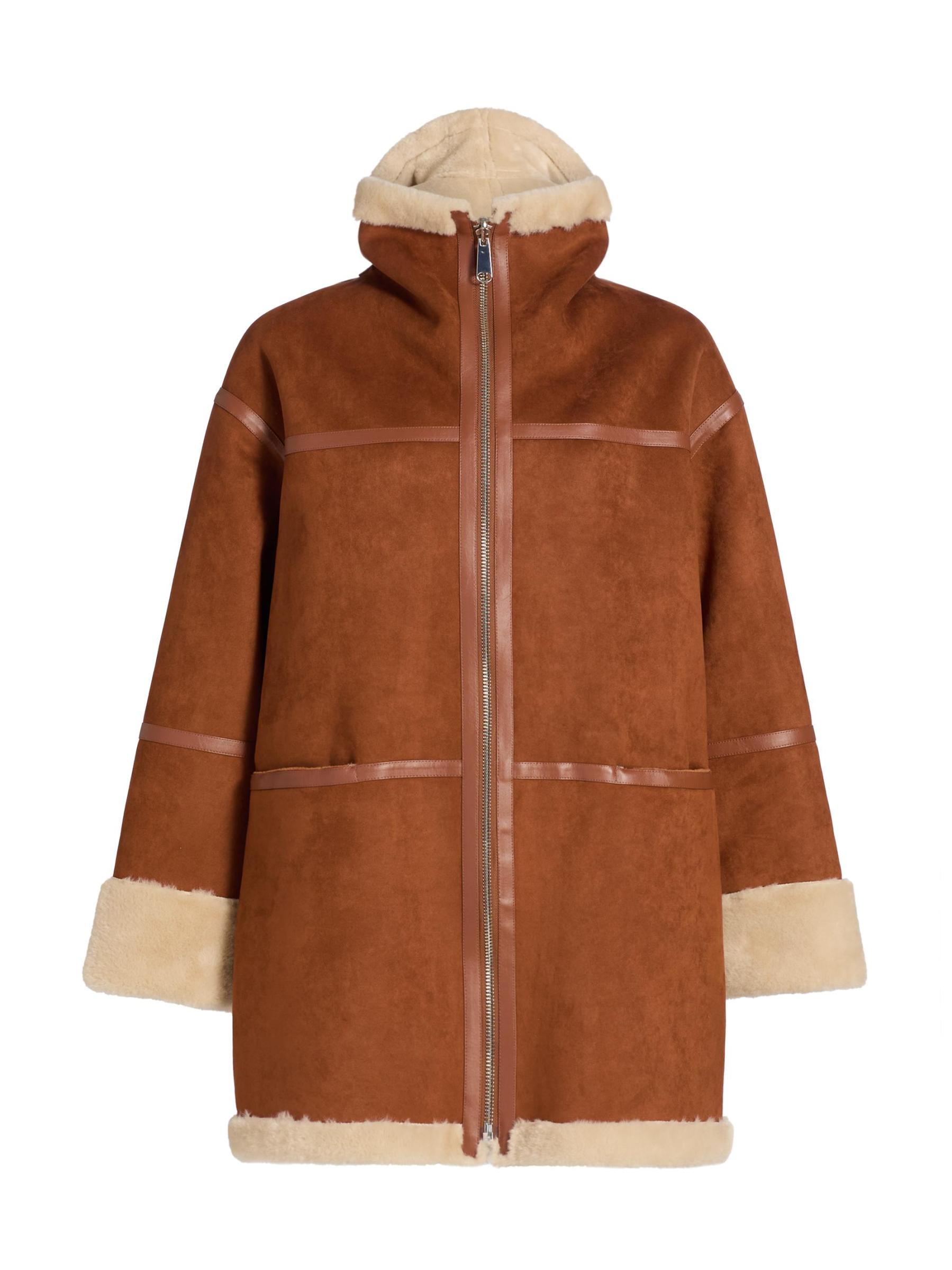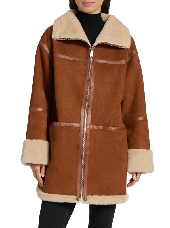 معطف Mercer Collective كبير الحجم، المصنوع من الجلد المدبوغ الصناعي، يعود إلى الشيرلينغ الصناعي الفخم.