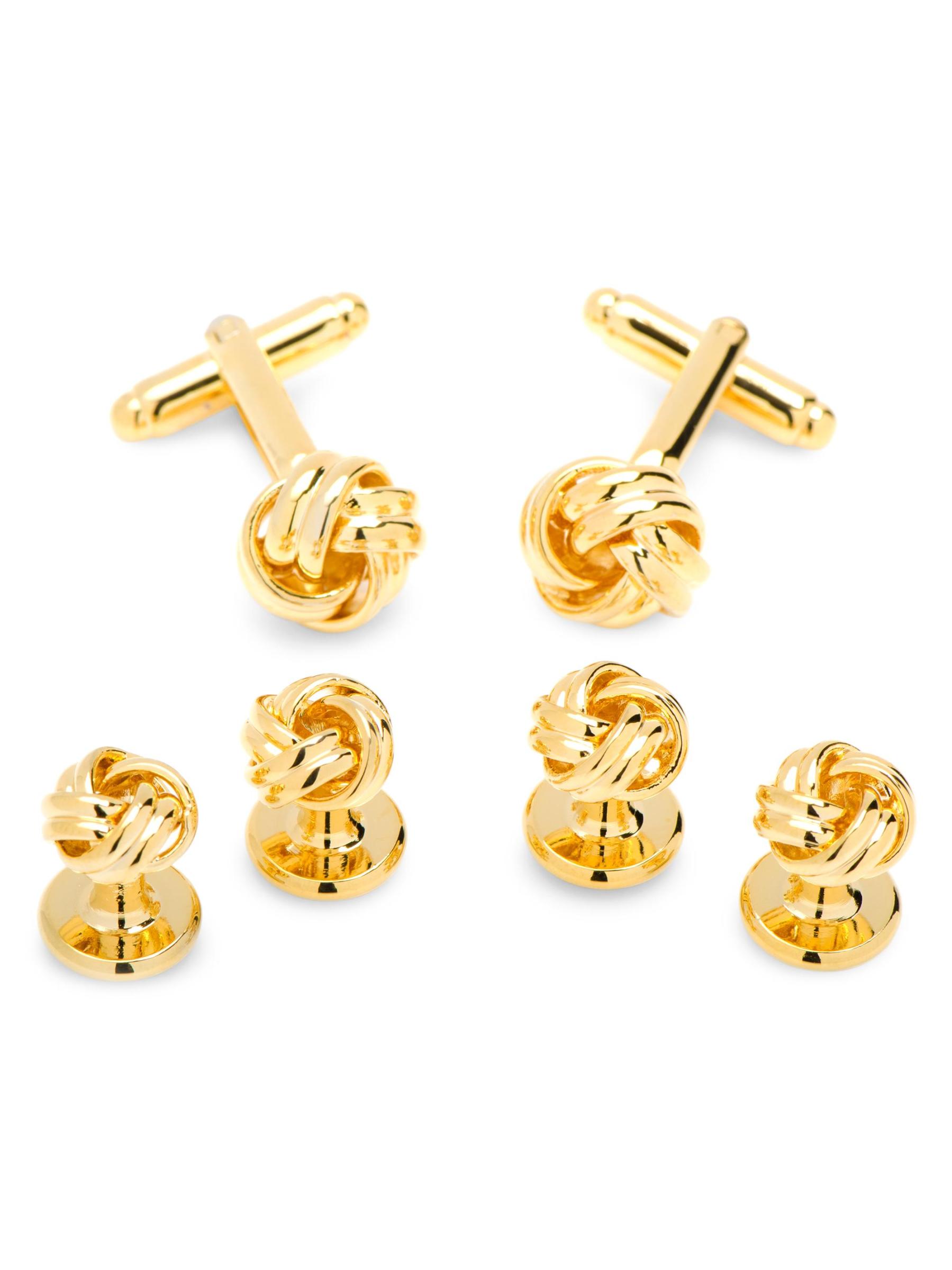 من شركة أووكس آند بول للتجارة مجموعة. طقم أزرار وأزرار توكسيدو باللون الذهبي مع شكل عقدة عصري.