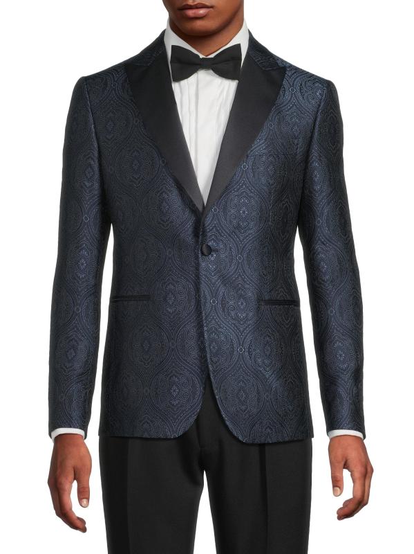 جاكيت عشاء أحادي الصدر من مزيج بيزلي من الحرير
