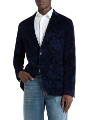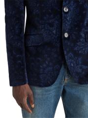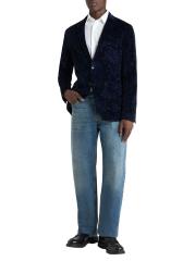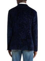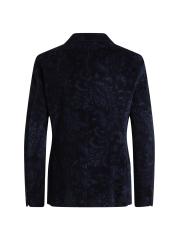 صُنعت سترة Etro في إيطاليا من مخمل بيزلي وقصّت في صورة ظلية أحادية الصدر.