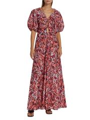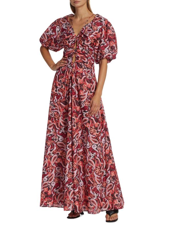 يتميز فستان Pallida الطويل بأكمام قصيرة من Magali Pascal بطبعة فريدة وصدر مجمّع بفتحة وأكمام قصيرة منفوخة. يُكمل الجزء الخلفي المفتوح هذا النمط من مزيج الحرير.رقبة متدلية أكمام قصيرة منفوخة تمثال نصفي مجمّع افتح مرة أخرى تنورة كاملة إغلاق بأزرار خلفية حرير/قطن البطانة: 100% قطن غسيل يدوي مستوردة