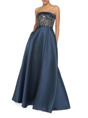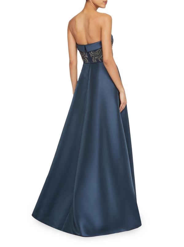 صُنع فستان Paloma من Theia من الميكادو ويتميز بالخرز المعقد على الصدّار المناسب. صُمم هذا الطراز بتصميم على شكل حرف A مع جيوب جانبية لمزيد من الراحة.
