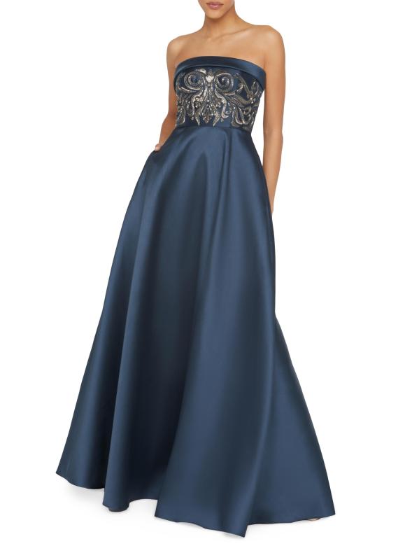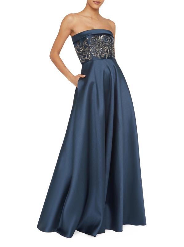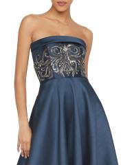 صُنع فستان Paloma من Theia من الميكادو ويتميز بالخرز المعقد على الصدّار المناسب. صُمم هذا الطراز بتصميم على شكل حرف A مع جيوب جانبية لمزيد من الراحة.خط رقبة مستقيم بدون حمالات جيوب جانبية على درزات إغلاق بسحّاب خلفي مخفي 100% بوليستر تنظيف البقع مستوردة