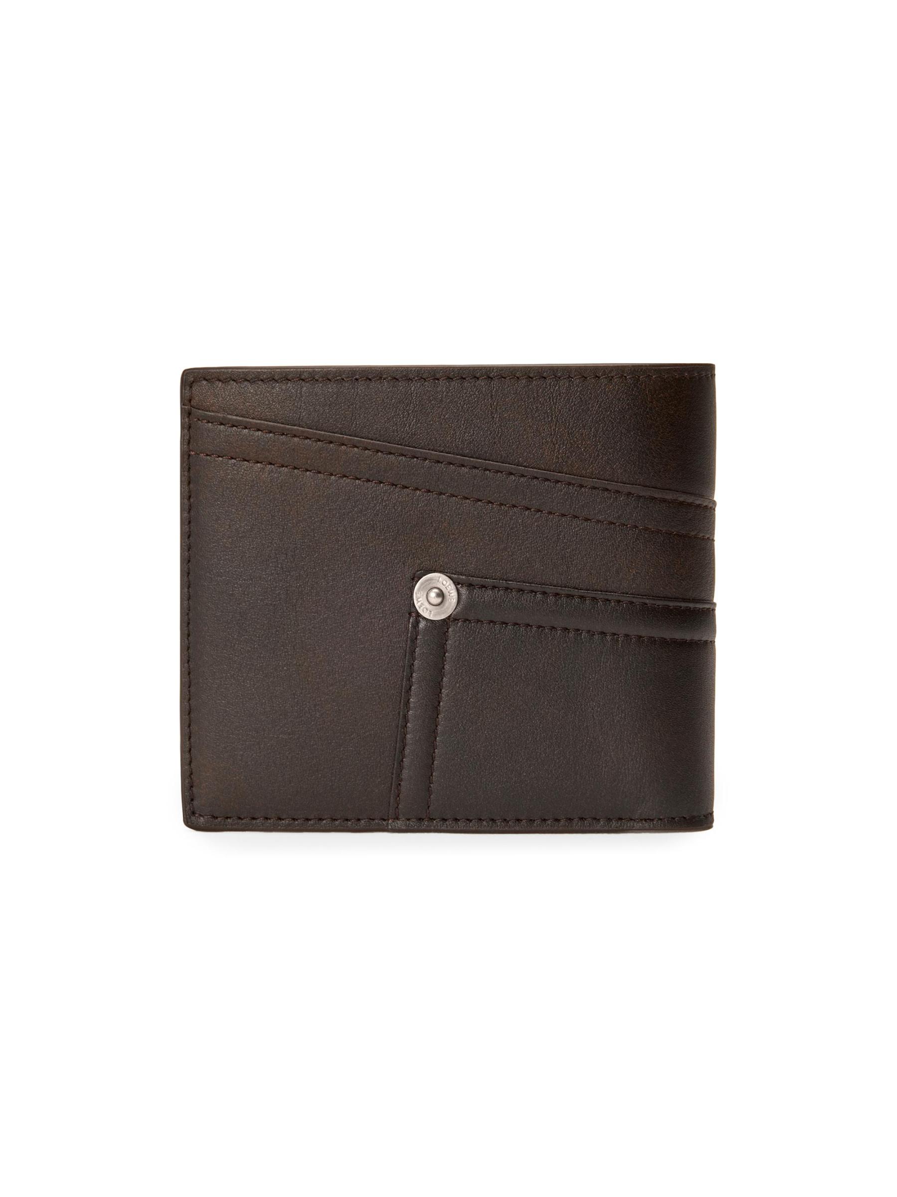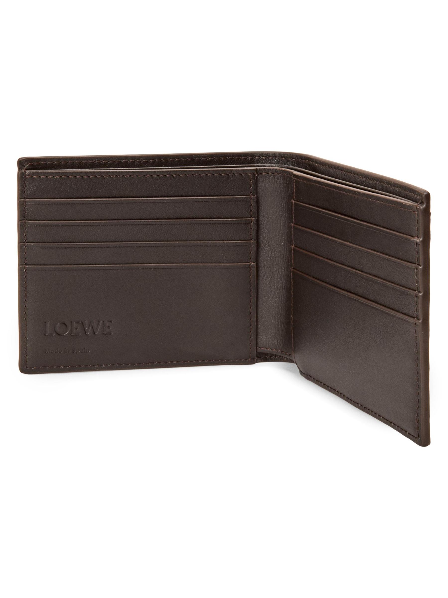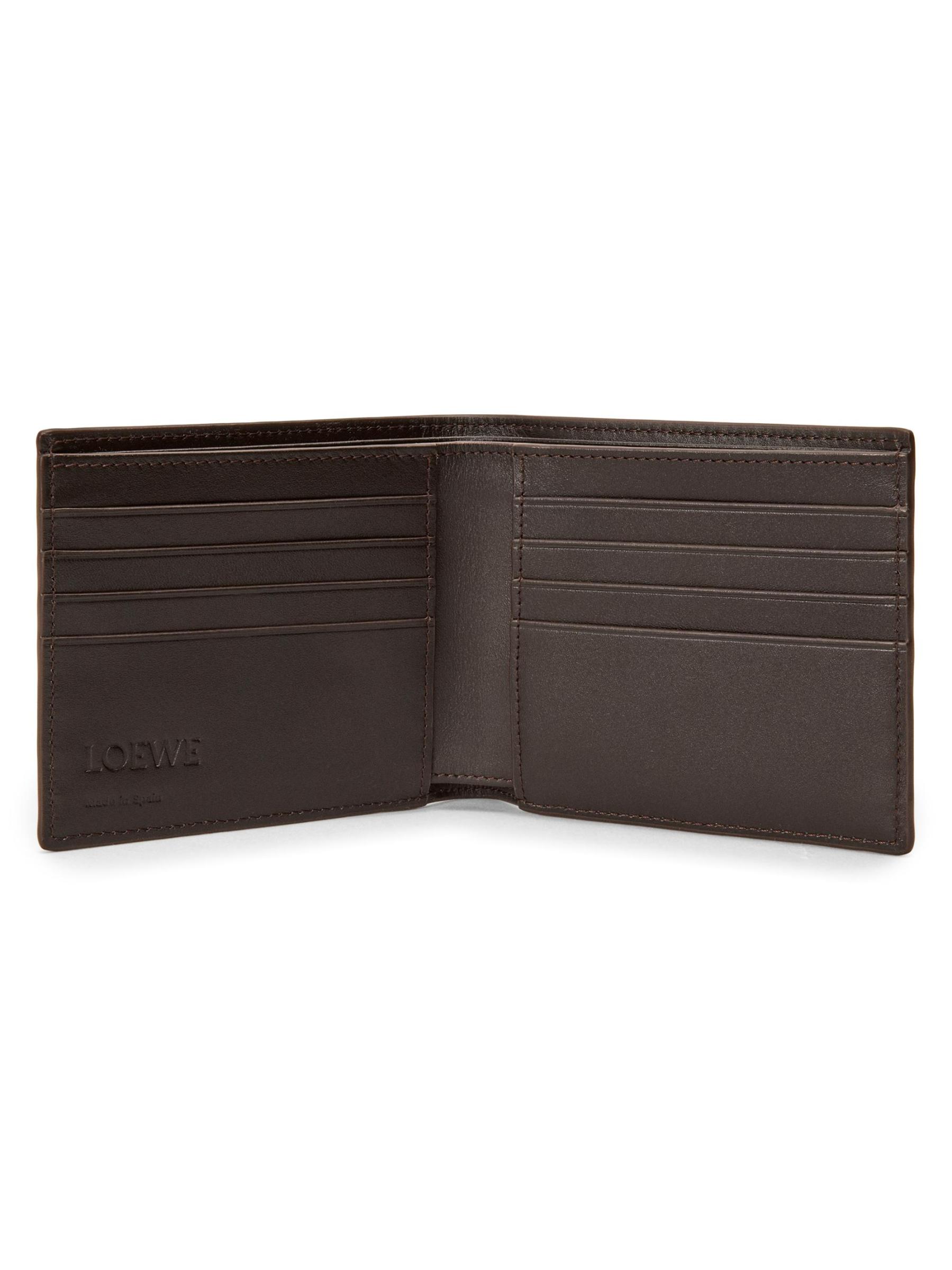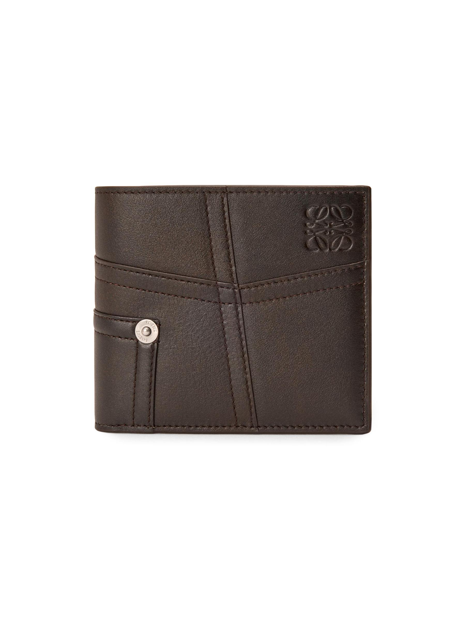 محفظة Panta ثنائية الطيات من LOEWE مصنوعة من الجلد بتصميم مستوحى من الدنيم. يتضمن الطراز فتحات متعددة للبطاقات وحجرة للنقود لتوفير الراحة المنظمة.