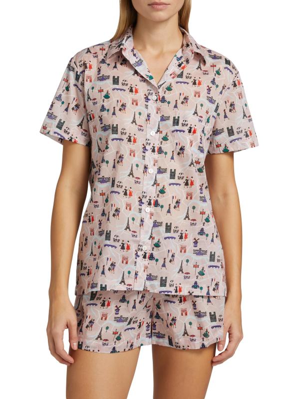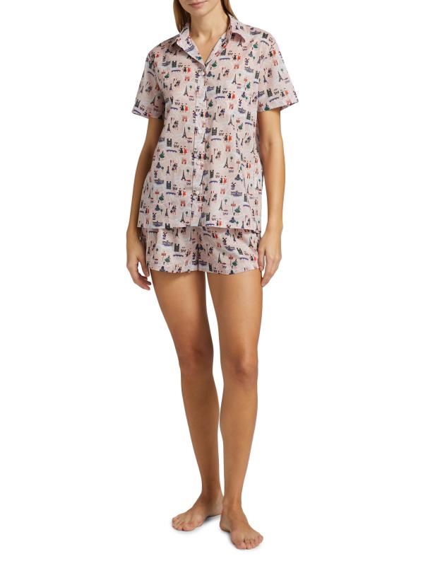 تتميّز بيجامات Pour Les Femmes Paris هذه المصنوعة من القطن بطبعة تجريدية، بقميص بأزرار أمامية وشورت برباط. مصنوع من القطن بنسبة 100%. يُغسل في الغسالة. مستوردة.