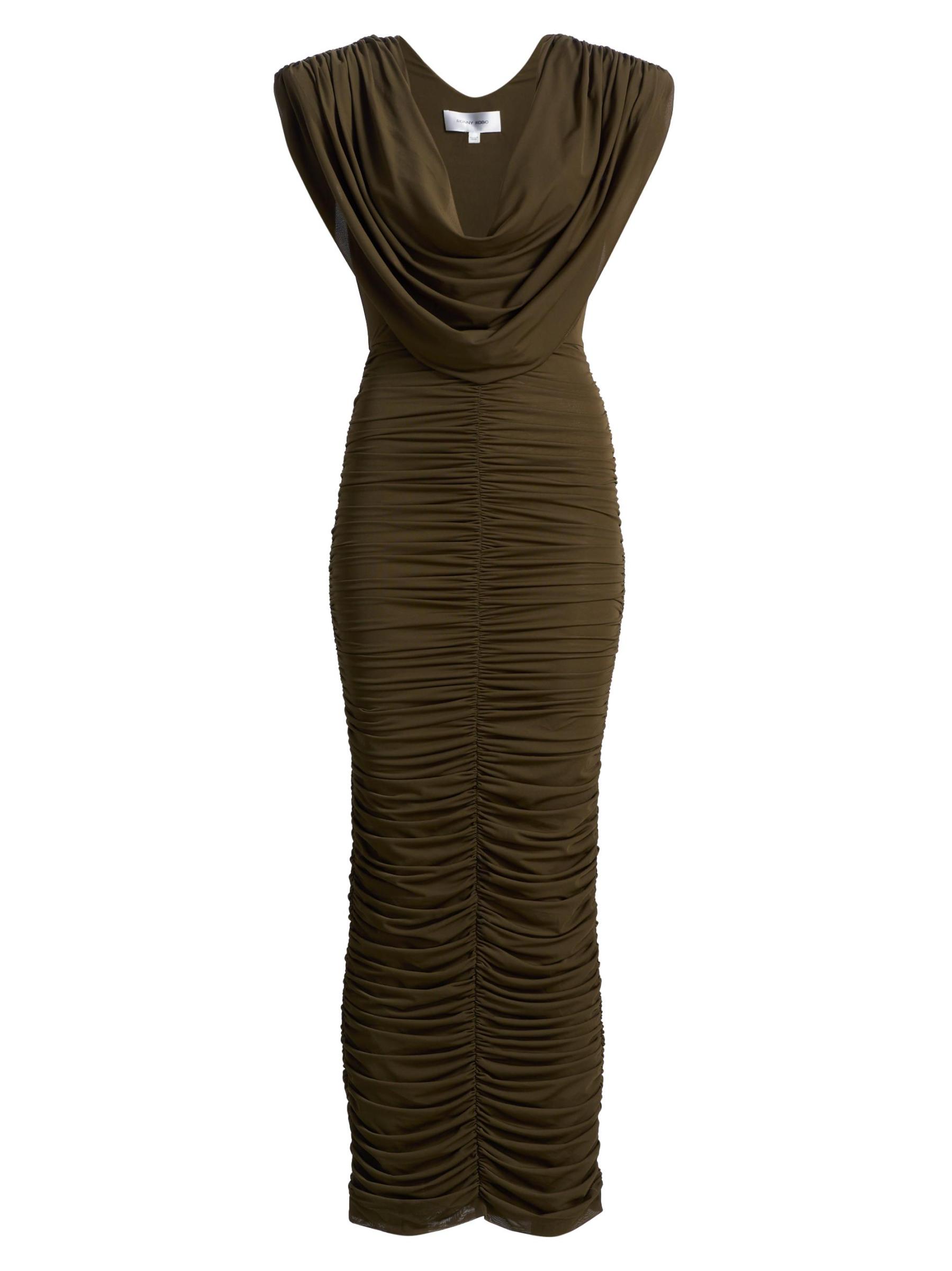 صُمم فستان Parish maxi هذا من Ronny Kobo بشكل يشبه الجسم مع كشكش في جميع أنحاء الصدّار والتنورة. تضفي رقبة التقوس الواسعة التي تمتد من الأكتاف المهيكلة جاذبية مثيرة لهذا الأسلوب.