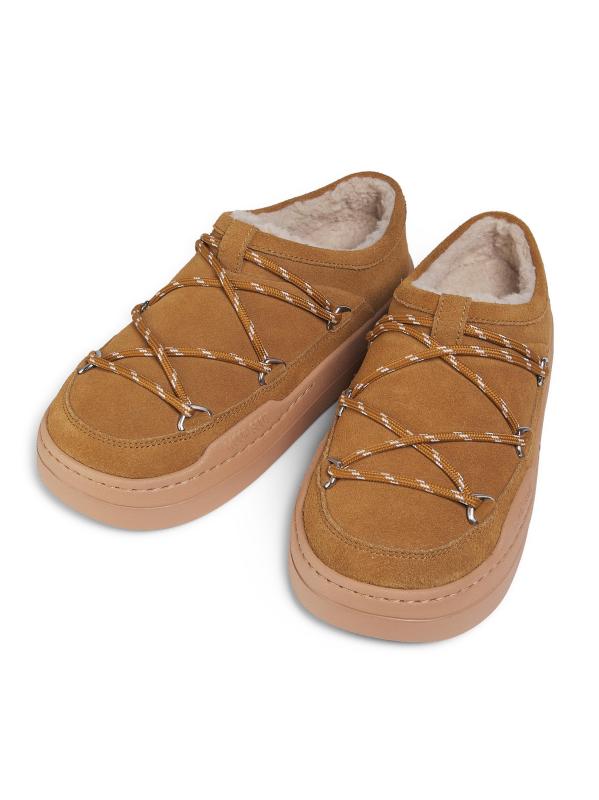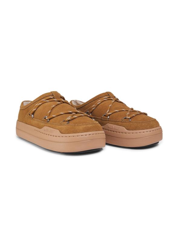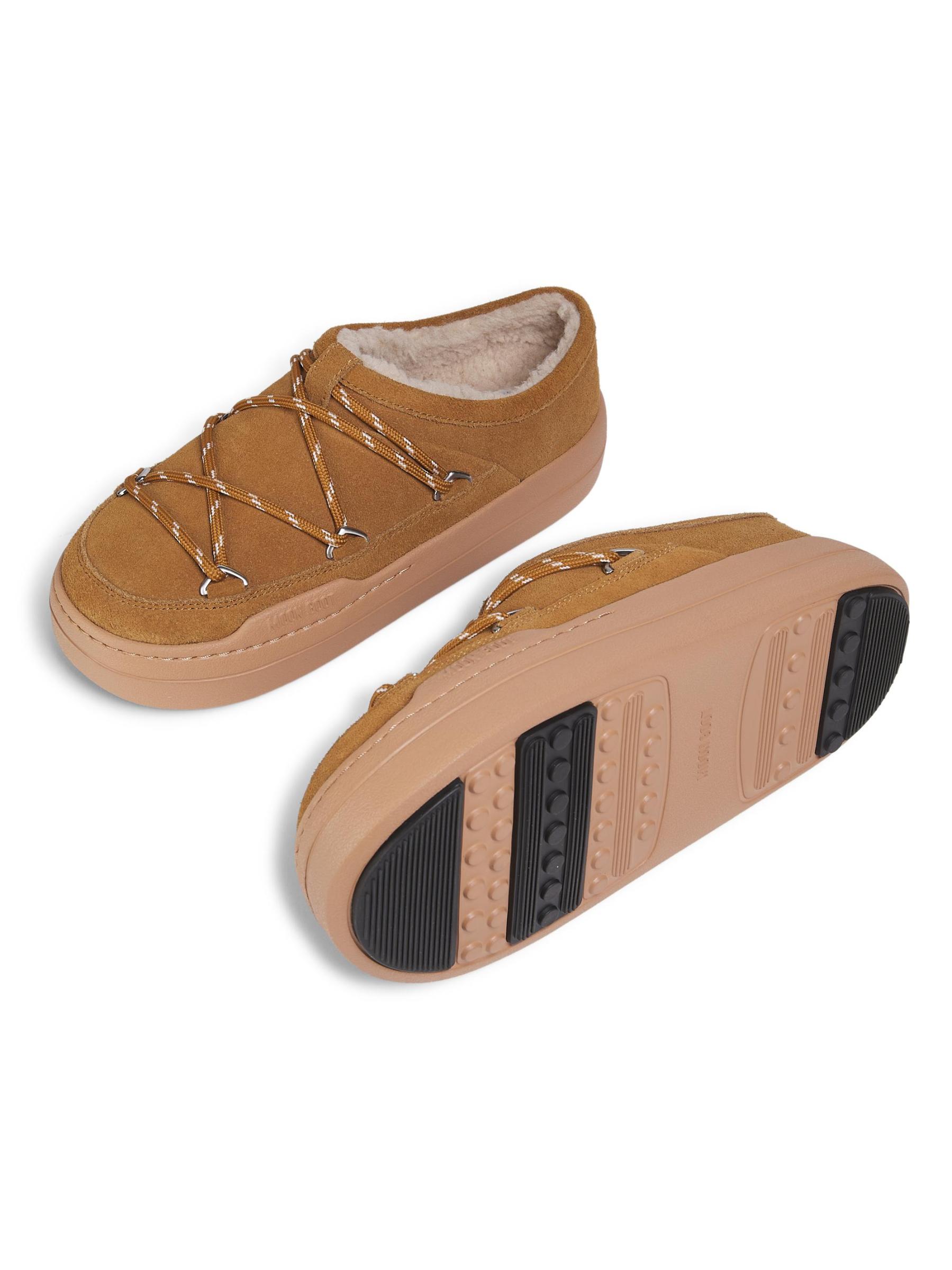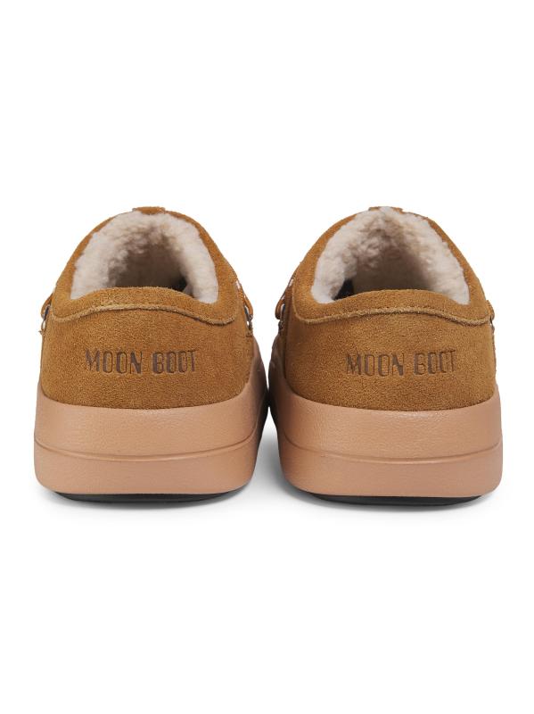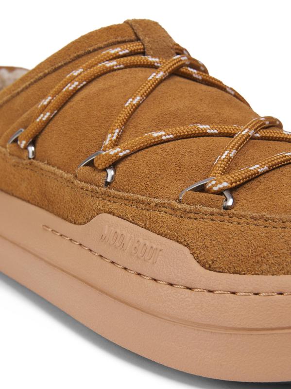 يتميز شبشب Park من Moon Boot المصنوع من الجلد المدبوغ بتصميم دائري مميز للعلامة التجارية مُعزّز بتفاصيل الدانتيل ذات الألوان اللونية وبطانة من الصوف.