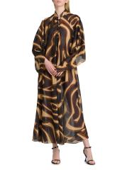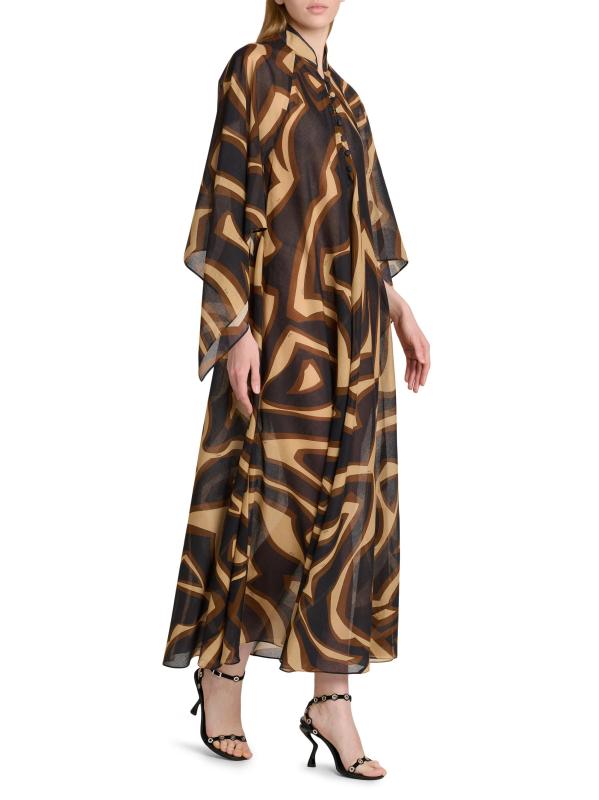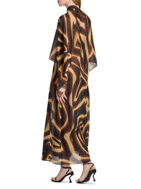 من مجموعة باسبارتوت. يتميز قفطان Pucci الكبير هذا المصنوع من قطن الشاش في إيطاليا بتصميم منسدل وياقة مسطحة وأزرار مغطاة ذاتيًا.