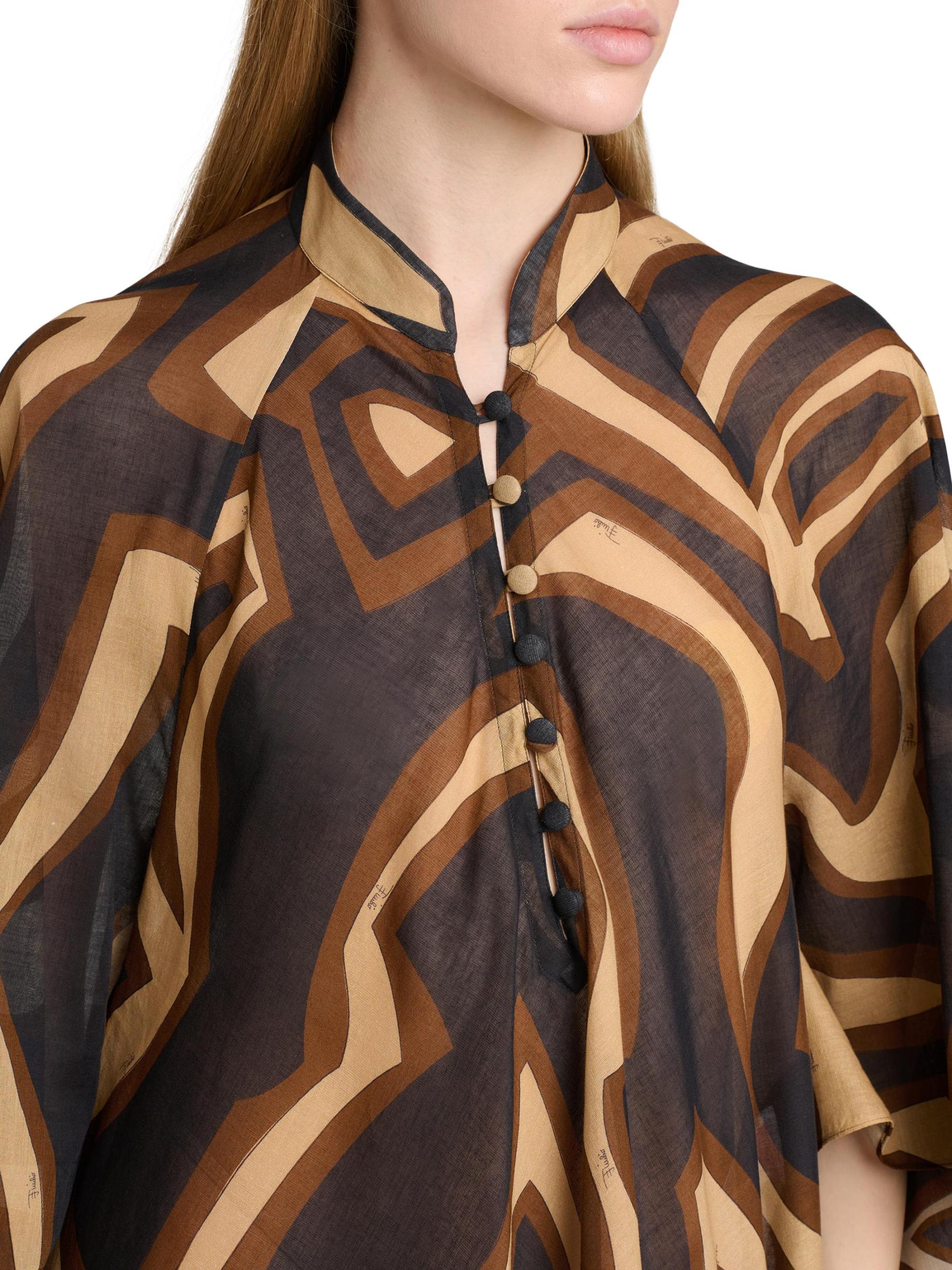 من مجموعة باسبارتوت. يتميز قفطان Pucci الكبير هذا المصنوع من قطن الشاش في إيطاليا بتصميم منسدل وياقة مسطحة وأزرار مغطاة ذاتيًا.ياقة ستاند أكمام طويلة إغلاق بأزرار أمامية قطن بنسبة 100% تنظيف جاف صُنع في إيطاليا