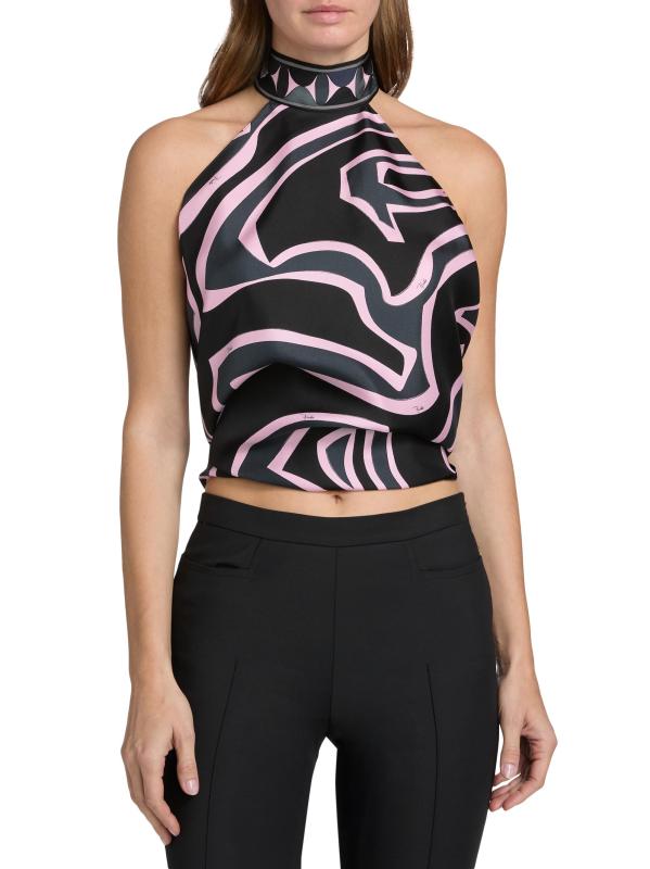 من مجموعة باسبارتوت. تتميز هذه البلوزة المصنوعة من الحرير من Pucci بنقشة هندسية. يتميز هذا التصميم ذو الرقبة الرسن بظهر مفتوح جذاب.رقبة هالتيرنك بدون أكمام افتح مرة أخرى إغلاق برباط خلفي حرير بنسبة 100% تنظيف جاف صُنع في إيطاليا