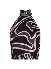 من مجموعة باسبارتوت. تتميز هذه البلوزة المصنوعة من الحرير من Pucci بنقشة هندسية. يتميز هذا التصميم ذو الرقبة الرسن بظهر مفتوح جذاب.