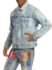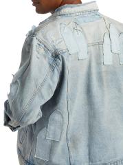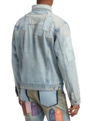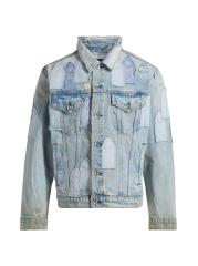 جاكيت Who Decires War هذا مصنوع من الدنيم الصلب ومزين بالعديد من الرقع الزجاجية المستوحاة من النوافذ. تضفي التفاصيل المؤلمة والشبيه بالبقع إحساسًا قويًا على هذا النمط.
