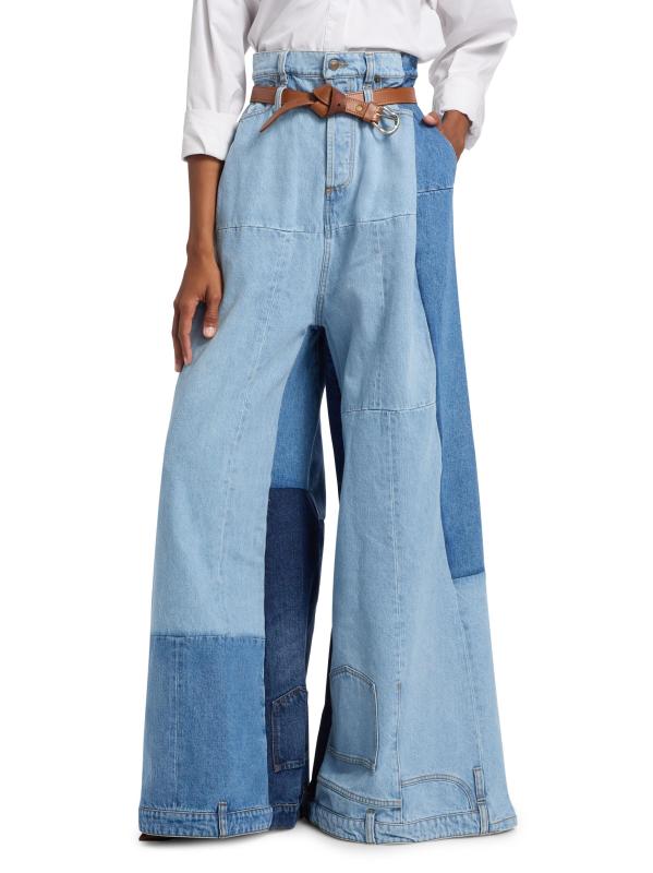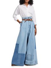 بنطال جينز واسع الساق بحزام مرقع