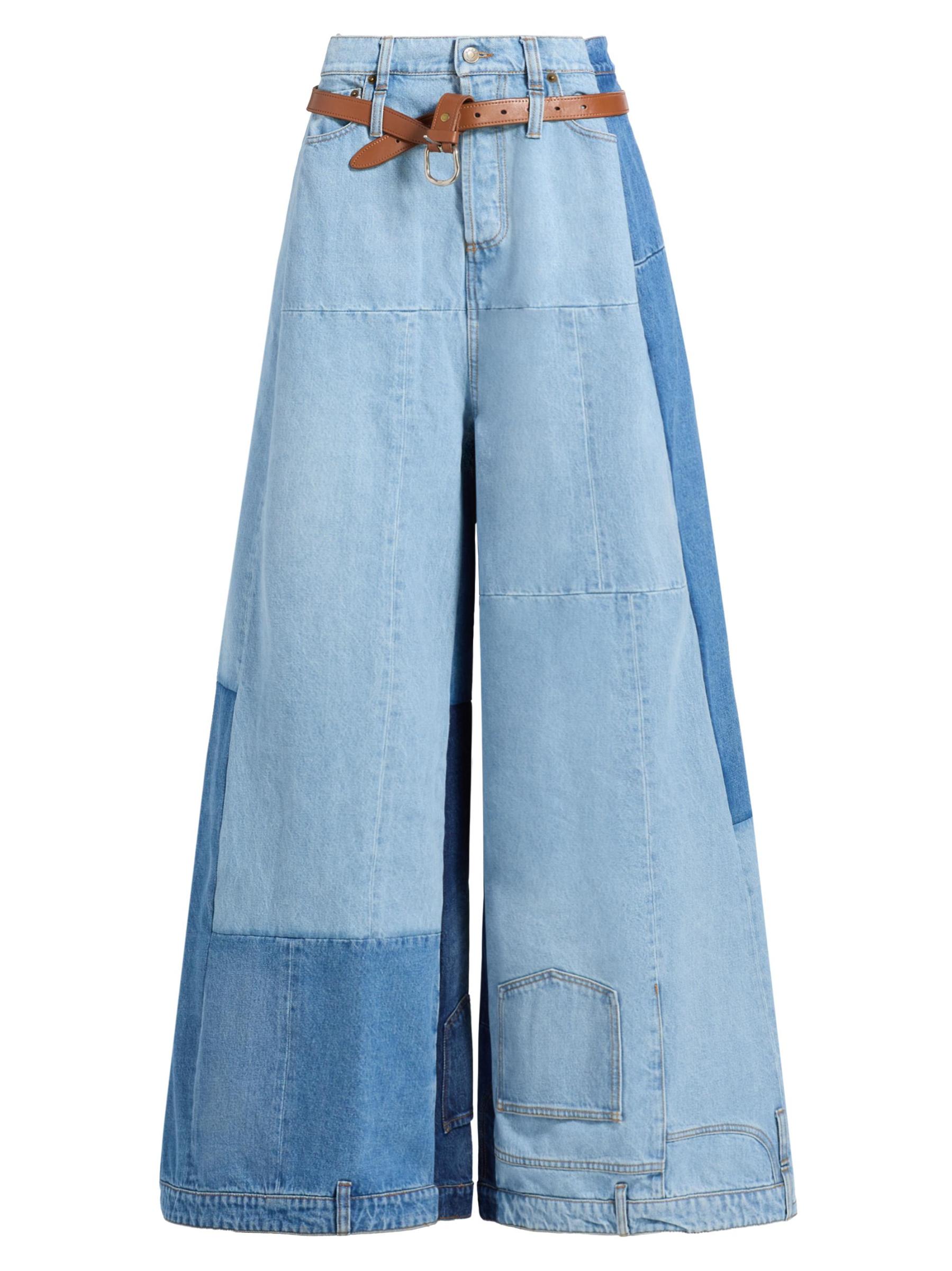 تتميّز سراويل الجينز الكبيرة ذات الأرجل الواسعة من A.W.A.K.E. Mode بتصميمها المرقع الذي يجمع بين طبقات مختلفة من الجينز والتفاصيل المثبتة معًا للحصول على مظهر تجريدي.طراز بخمسة جيوب جيوب جانبية مائلة حزام قابل للتعديل زر يطير قطن بنسبة 100% تنظيف جاف مستوردة