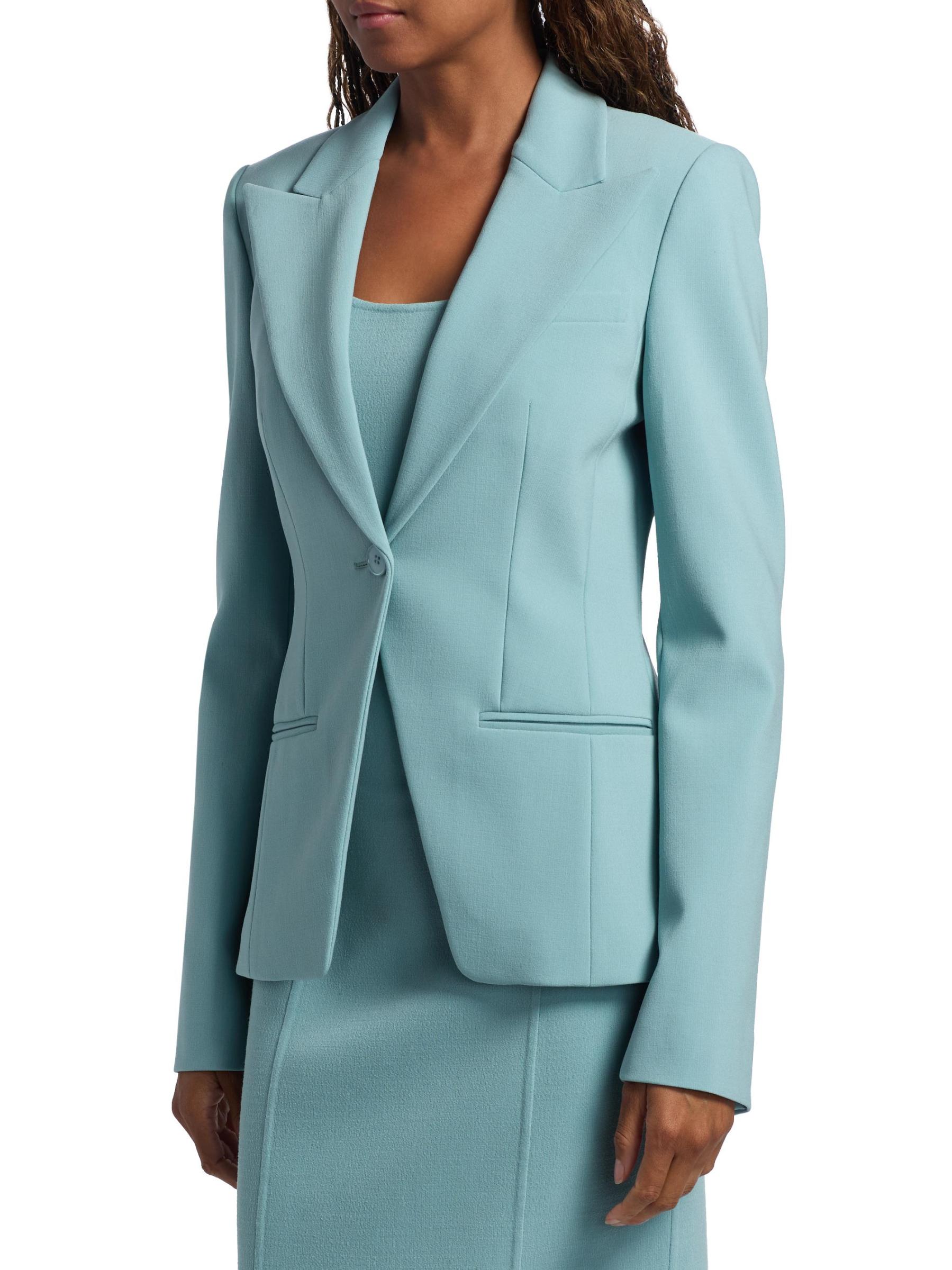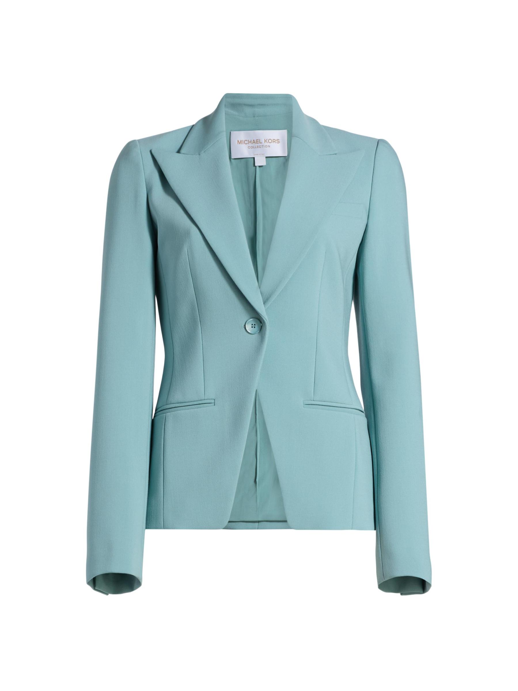 تتميّز هذه السترة أحادية الصدر من مجموعة مايكل كورس، المصنوعة من مزيج من الصوف البكر، بثنيات الصدر الكلاسيكية وأزرار الإغلاق ذات الألوان اللونية.