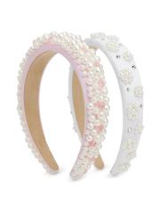 تشتمل مجموعة Bari Lynn المكونة من قطعتين على طوق رأس منفوخ مزين باللؤلؤ الزهري وعصابة رأس من اللؤلؤ والخرز.