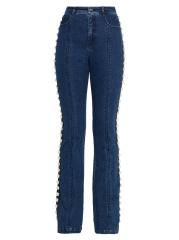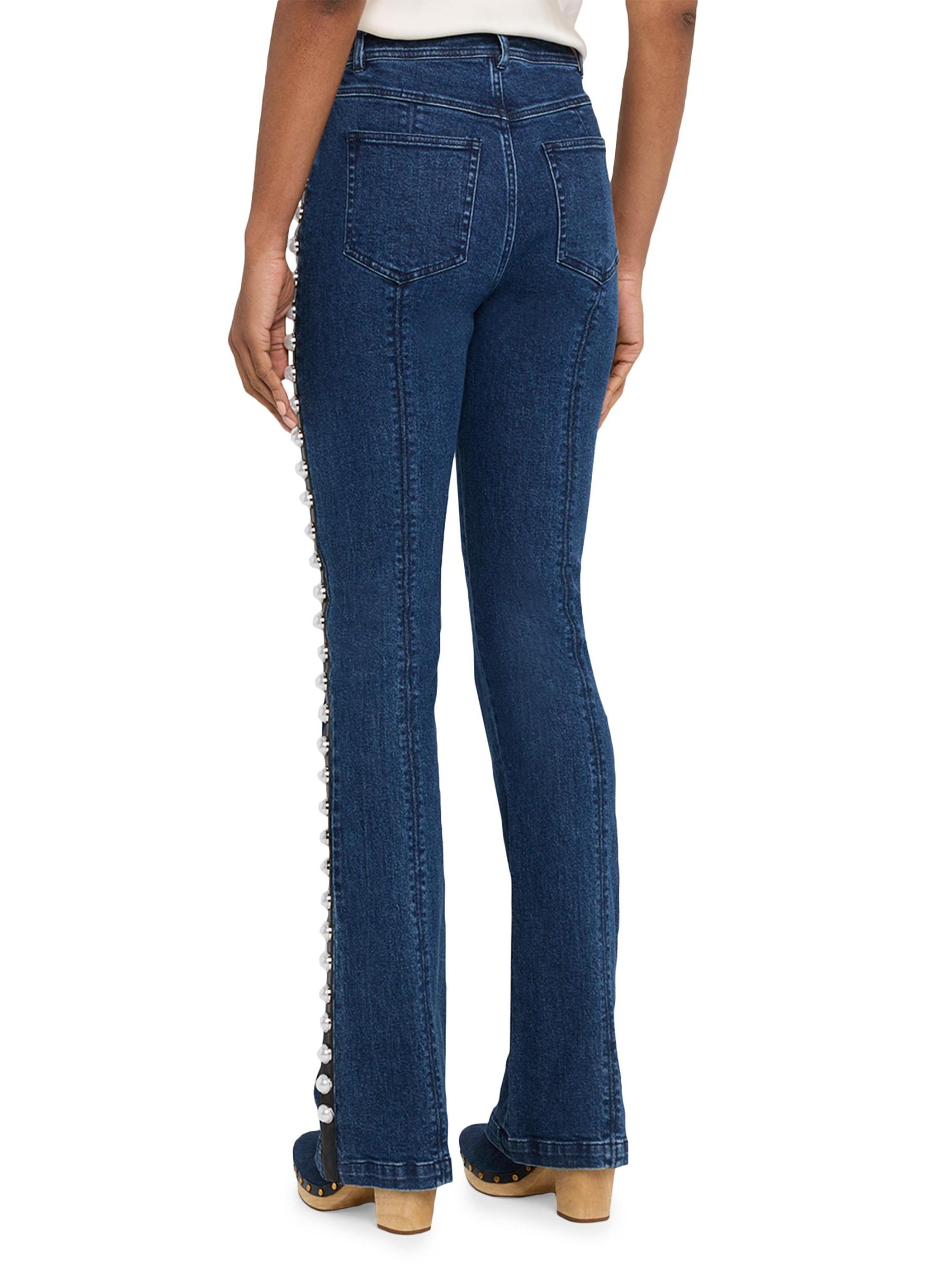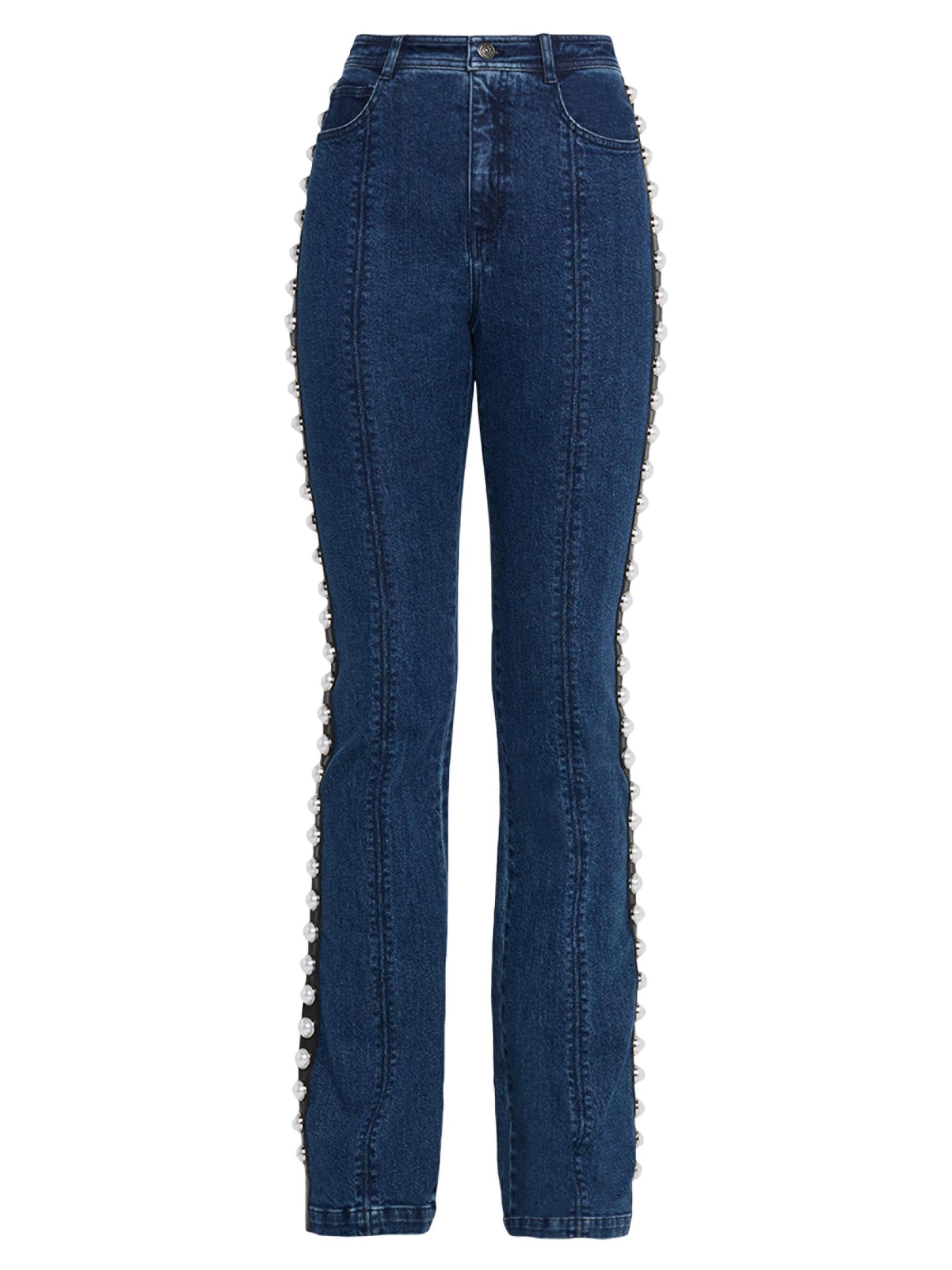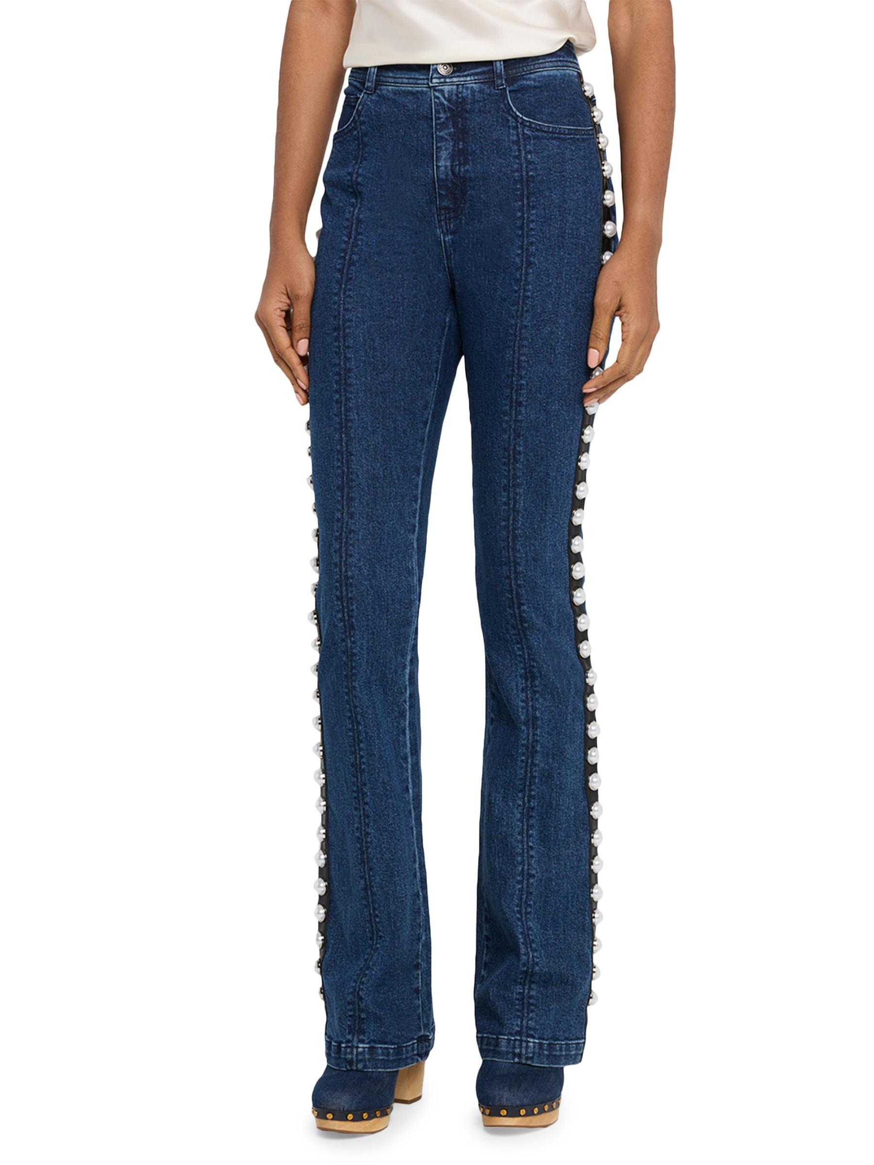 بنطال جينز طويل قابل للتمدد بزخرفة لؤلؤية