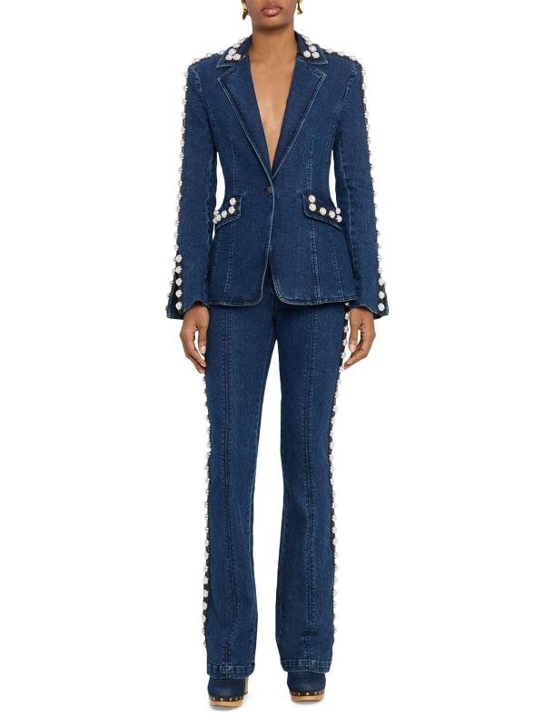تزيّن اللآلئ المقلدة بنطلون جينز Shailene من Cinq à Sept. مصنوع من الدنيم المرن، ويتميز هذا الطراز بدرزات أمامية طويلة وصورة ظلية مضيئة عالية الارتفاع.