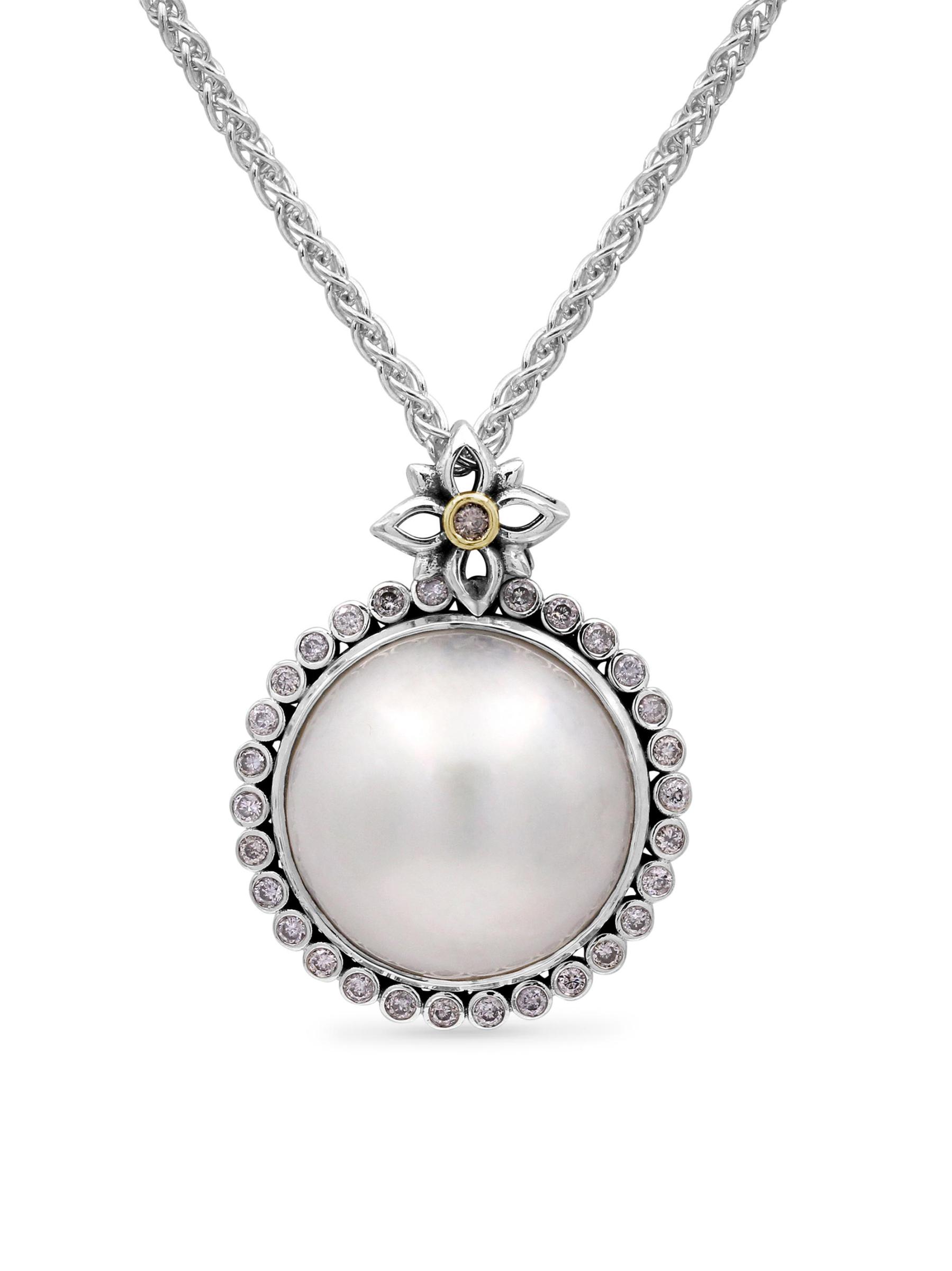 تتميز قلادة ستيفن دويك المصنوعة يدويًا من الفضة الاسترلينية والذهب الأصفر عيار 18 قيراطًا بلؤلؤة بيضاء مضيئة تحدها ألماس الشمبانيا اللامع. هذا الإكسسوار هو من مجموعة Pearlicious Collection الخاصة بالمصمم، وهي إعادة تفسير حديثة لمجوهرات اللؤلؤ الكلاسيكية المثالية للارتداء اليومي.لؤلؤة مزروعة، 15 مم ألماس الشمبانيا، 0.31 طن درجة وضوح الماس: VS فضة إسترلينية/ذهب أصفر عيار 18 قيراطًا مشبك تبديل مستوردة