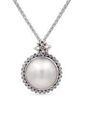 قلادة من الفضة الإسترلينية اللؤلؤية والذهب الأصفر عيار 18 قيراط والأحجار الكريمة المتعددة